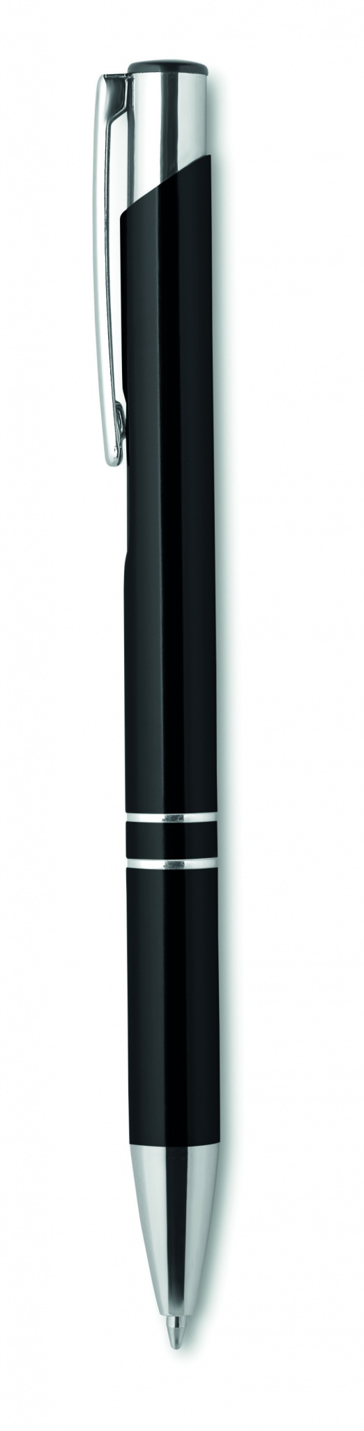 Push button pen in aluminium finish. Black ink.