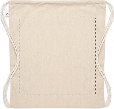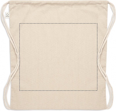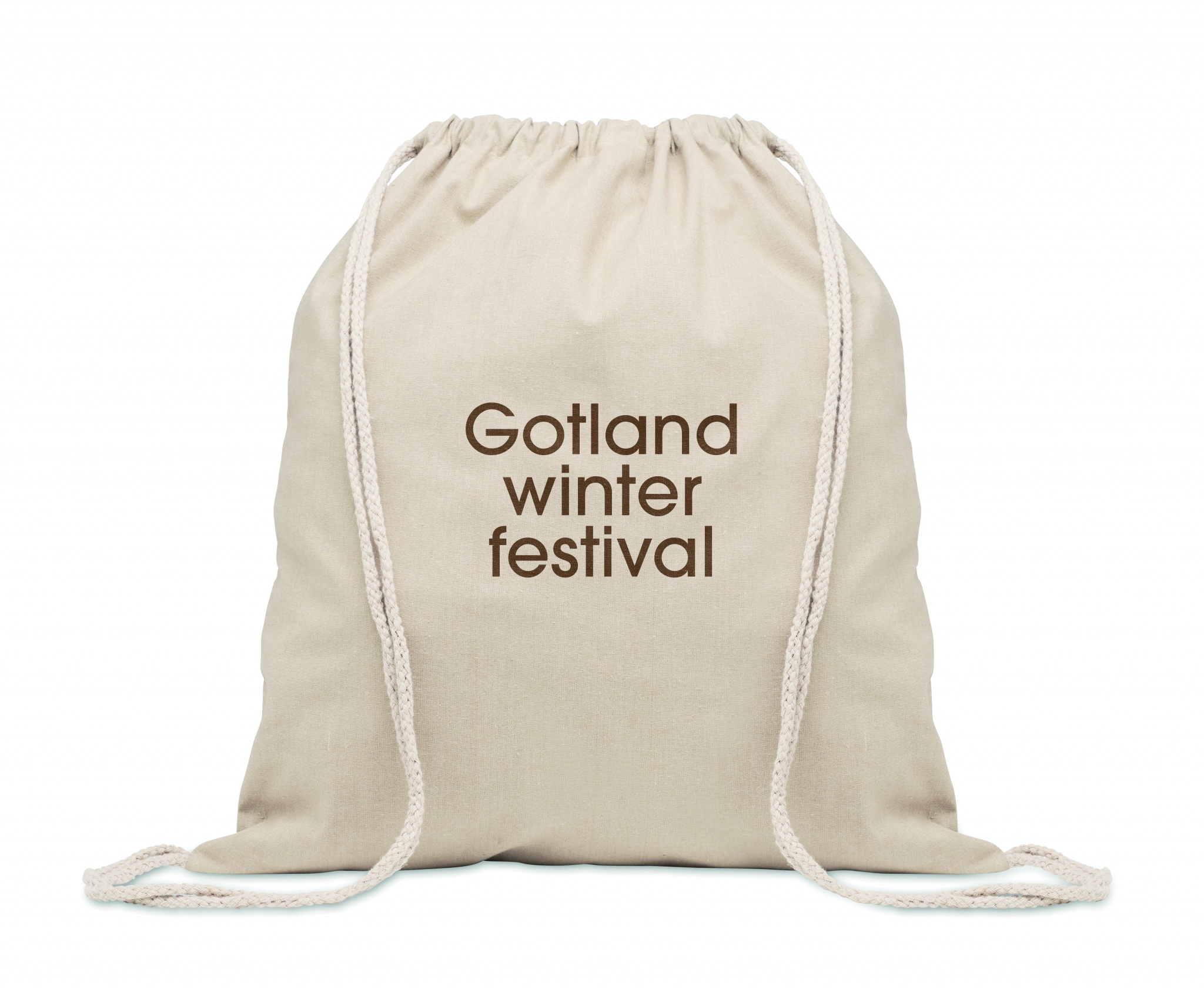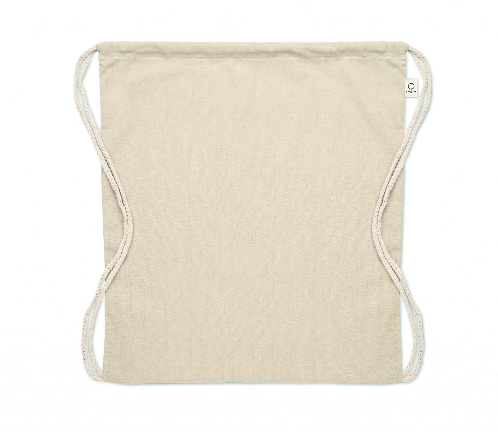 Drawstring bag in recycled pre-consumer cotton (70 %) and RPET (30%) 140 gr/m².