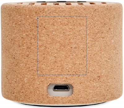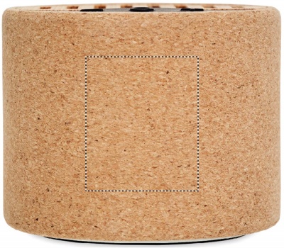 5.3 wireless speaker in ABS with cork casing with bamboo on top and LED light indication. 1 Rechargeable Lithium 300 mAh battery included. Output data: 3W, 4 Ohm and 5V. Playing time approx.. 4h. Cork is 100% natural material. Due to its structural nature and surface porosity the final print result per item may have deviations.