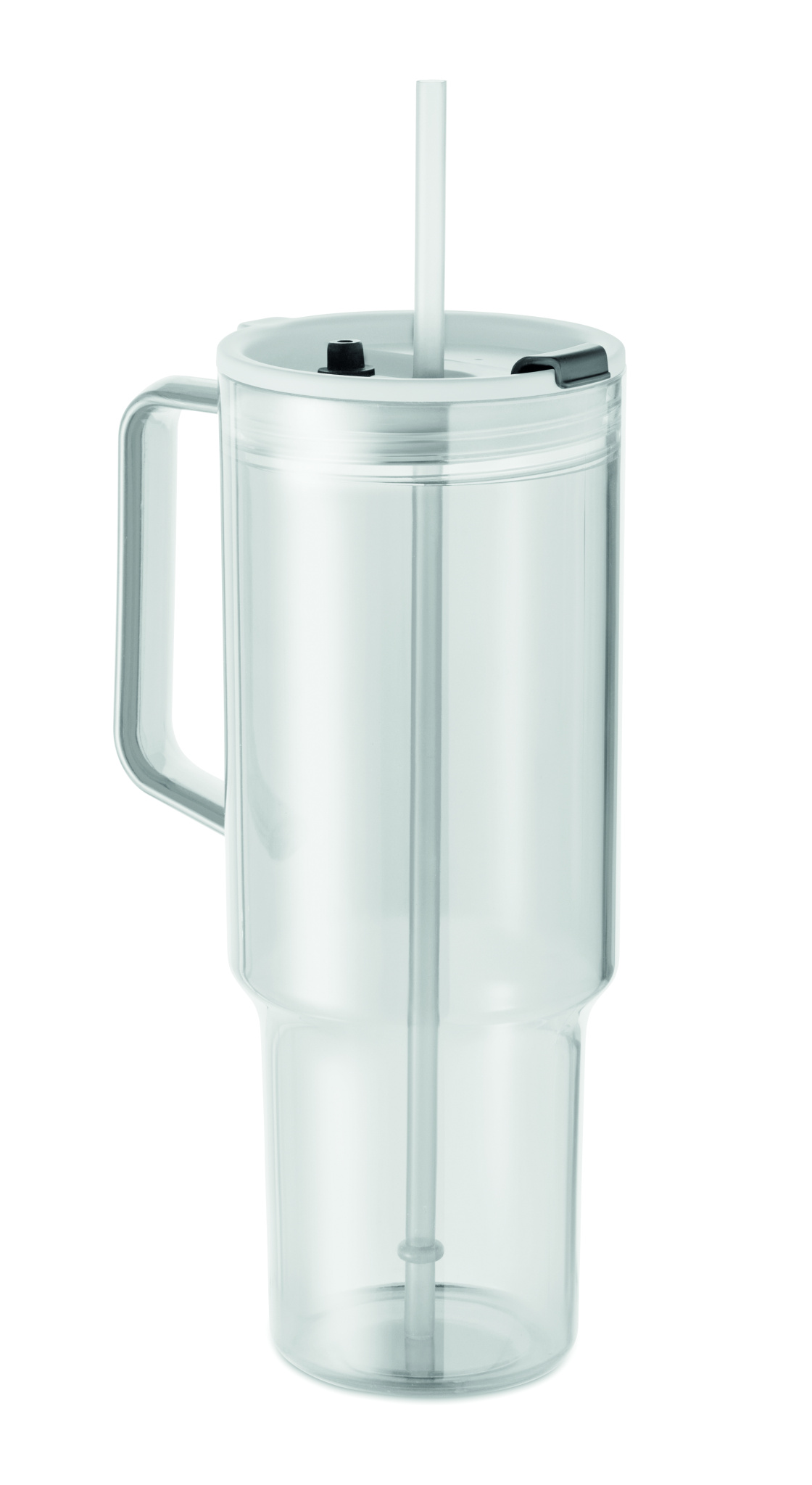 Tumbler in RPET with straw lid including PP straw. Capacity: 1200 ml.