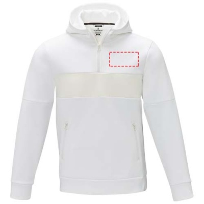 The Sayan men's half zip anorak hooded sweater – a unique combination of performance and style. The anorak design combines fashion and function seamlessly, featuring a quarter zip for versatility in layering. Made from a 350 g/m² blend of polyester and Sorona® knit. The Sorona® fiber enhances the jacket's eco-friendliness by incorporating a sustainable element without compromising on performance. The contrast fabric on the front panel, made of 280T ripstop nylon, adds to the design with its durability and texture and is the ideal location to showcase your brand. Whether you're embarking on an outdoor adventure or simply navigating your daily routine, the Sayan hooded sweater effortlessly combines fashion with function.