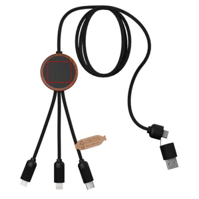 Products Office SCX.design C37 5-in-1 rPET light-up logo charging cable with round wooden casing