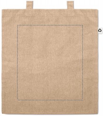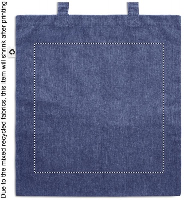 2 tone recycled cotton (20%) and recycled polyester (80%)shopping bag with long handles. Approx. 140 gr/m². This item can shrink after printing.