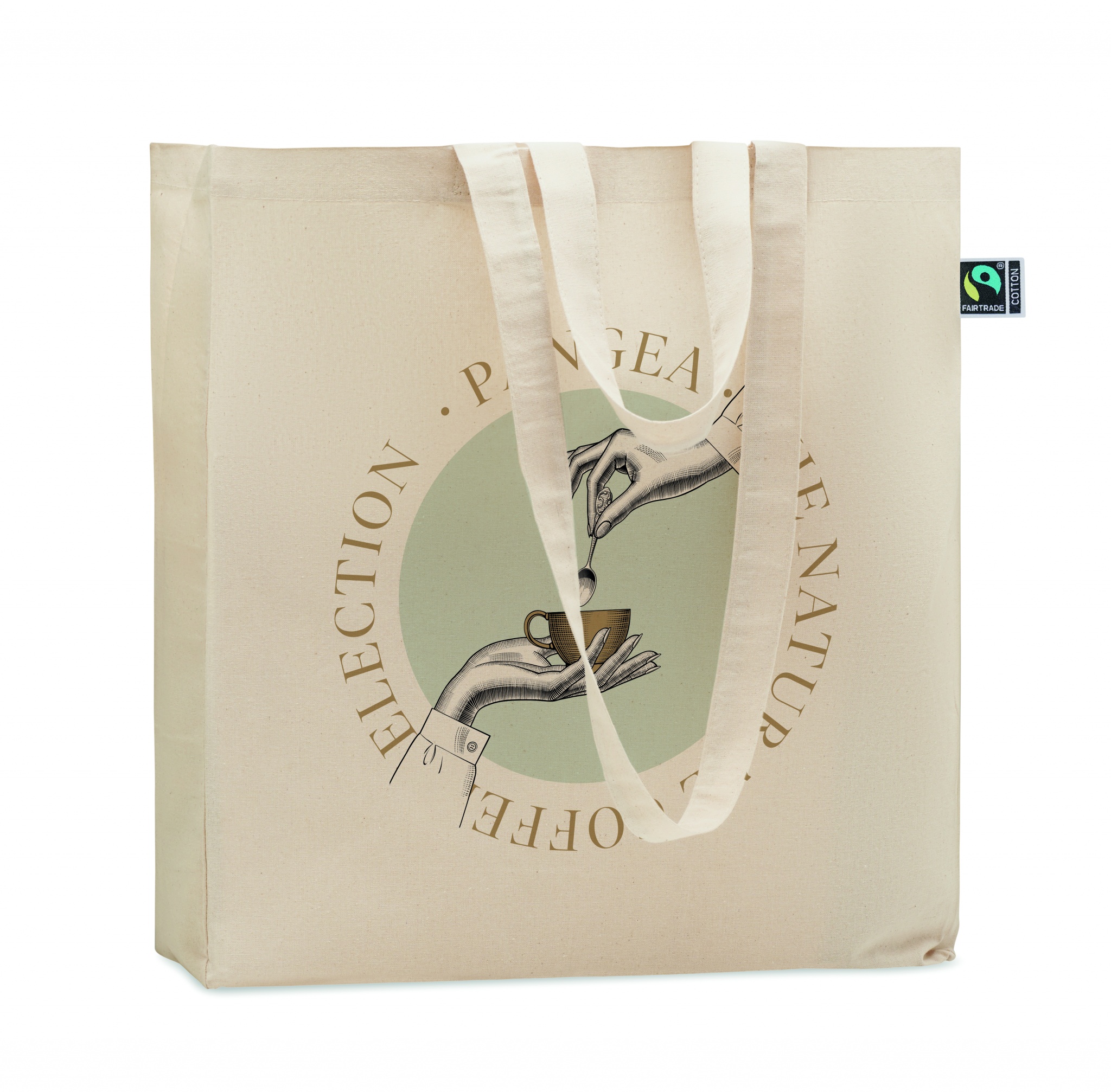 Shopping bag with long handles and gusset made of Fairtrade cotton. 180 gr/m².