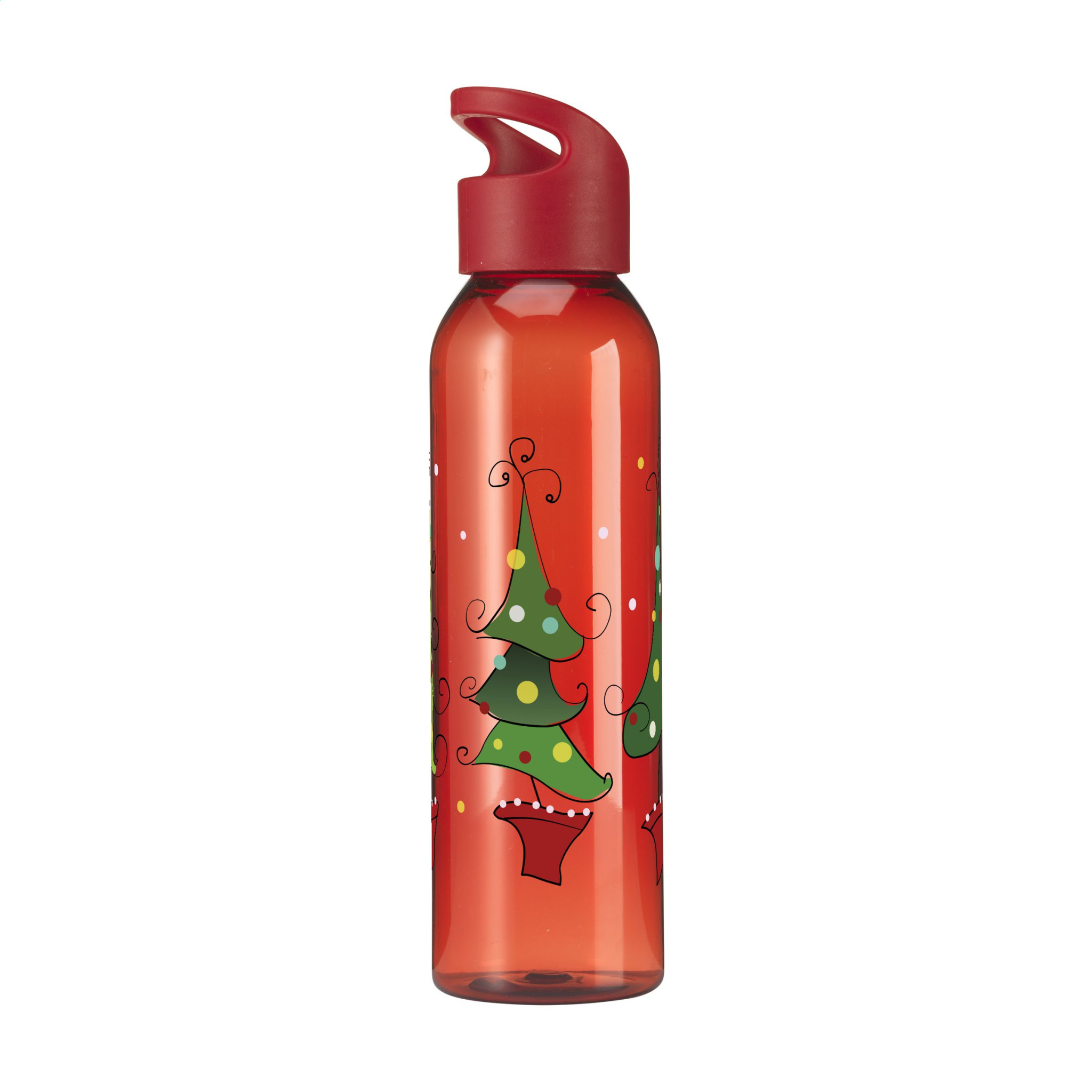 WoW! Luxury water bottle made from clear RPET, printed with a standard Christmas design. With a practical, plastic screw cap. BPA-free, leak proof and re-usable. Not dishwasher safe. Capacity 650 ml. GRS-certified. Total recycled material: 83%. - This product is printed with a standard Christmas design. Choice of 6 different designs as shown in the images. It is not possible to customize a design.