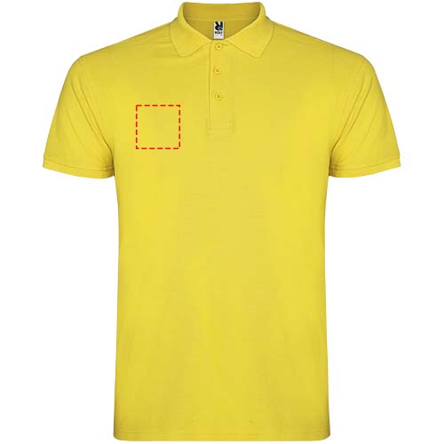 Short-sleeve polo shirt for men. Reinforced covered seams in interior collar. 1x1 ribbed cuffs and collar. Side seams. 3-button placket and side slits. Optional pocket. Removable label. The model is 185 cm and is wearing size L.