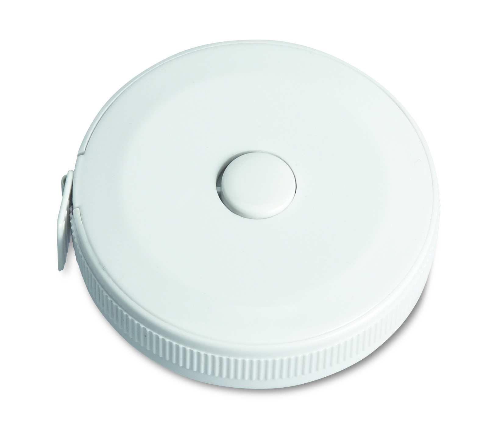 1m ABS measuring tape in round shape. With push button to fold and unfold it. Has cm and inches measurement.