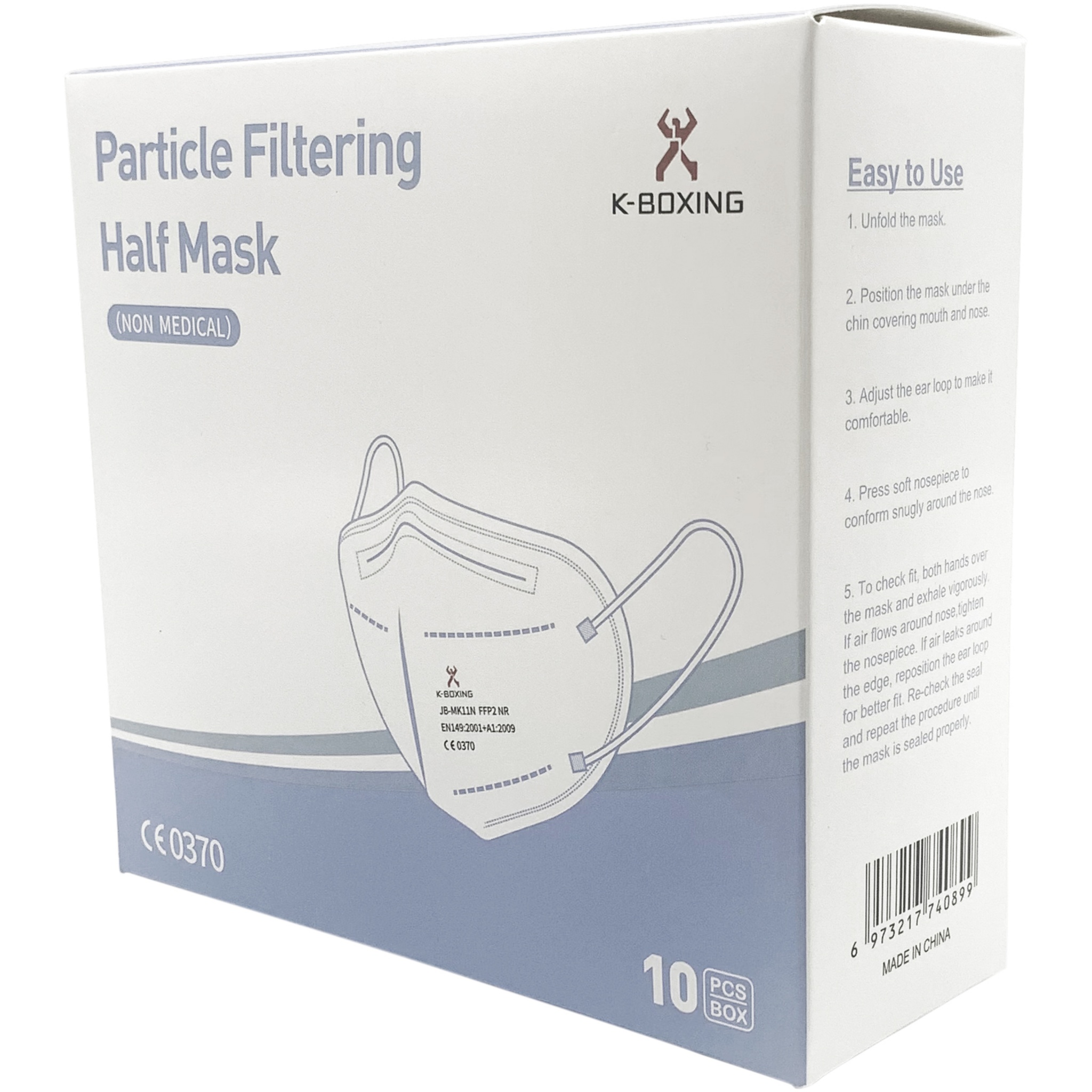 5 layers FFP2 NR face mask with soft and strong ear elastic and nose clamp ensuring a good fit. The mask has an outstanding filtering efficiency ( >98%) and is recommended for use by the general population and healthcare professionals to reduce cross-contamination. Protects the surrounding environment from particles emitted by the mask user and protects the user from the surrounding particles. Provides comfort through breathable material that does not irritate the skin. Each mask is packed in a single polybag size: 11,8 x 15,7 cm, and delivered in a 10 pieces full-colour box size: 14 x 13 x 5 cm. Compliance: EN149:2001 + A1:2009. CE Certification: issued by LGAI – notified body 0370. Module B Certification nr: 0370-4620-PPE/B. Module C2 Certification nr: 0370-4620-PPE/C2.
