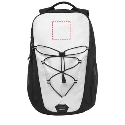 A mix of an outdoor and daily backpack with coloured facing and elastic cord with reflective accents on the front panel. Features two external water bottle meshed pockets, front compartment with several small divisions, a hook for easy storage, and a 12" tablet sleeve. The backpack has a padded reinforced handle and a comfortable padded back. Fits a 15.6" laptop in a padded sleeve inside the main compartment.