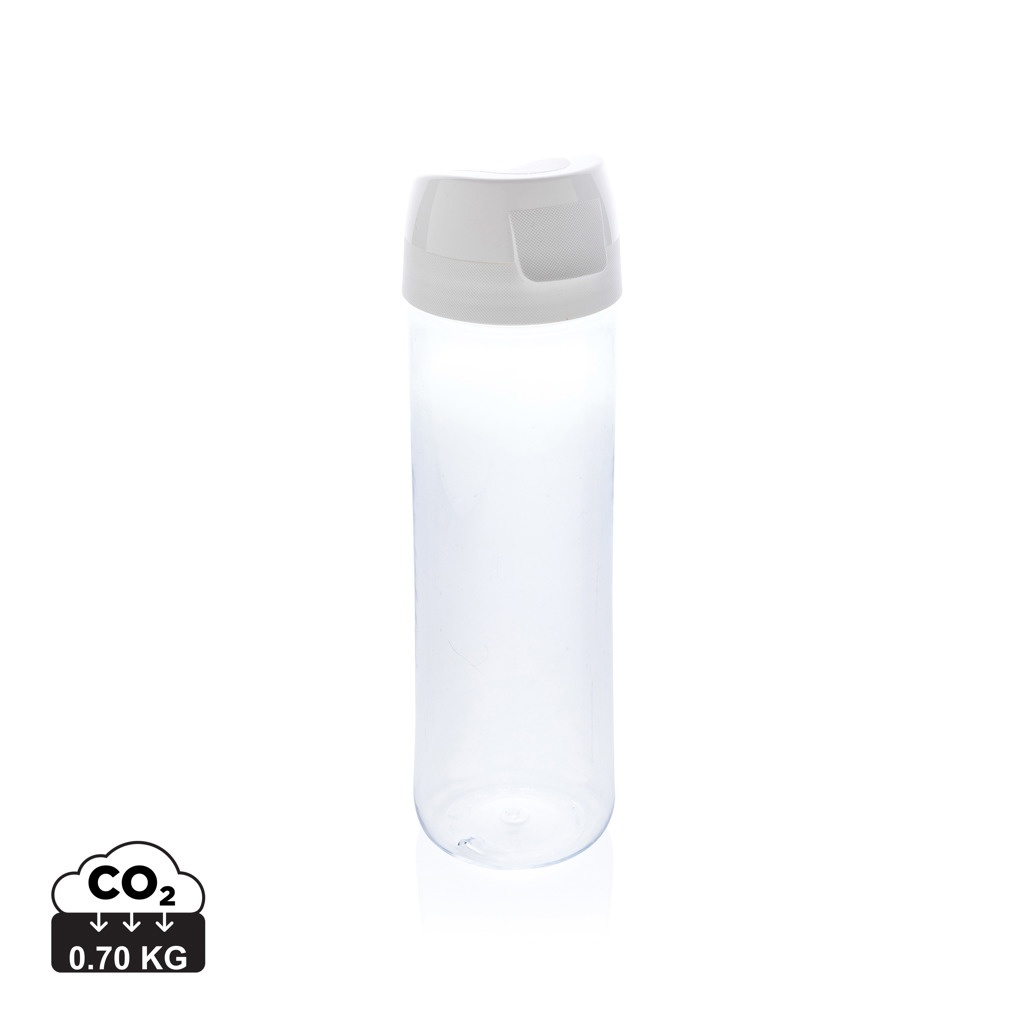 Made in Italy 0,75L water bottle with 1 hand opening. Made with Tritan™ Renew – an innovative plastic that utilises as much as 50% recycled material in place of fossil-based resources. Clear, clean and sustainable without any compromise on performance and durability. Recycled material verified by using ISCC Mass Balance Approach. Tritan Renew is powered by a unique process that breaks down waste plastic back into its basic chemical building blocks, allowing plastic materials to be recycled time and time again. This may cause minor imperfections on the product body but adds to its recycled character. Spill proof lid.