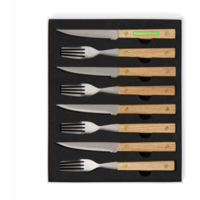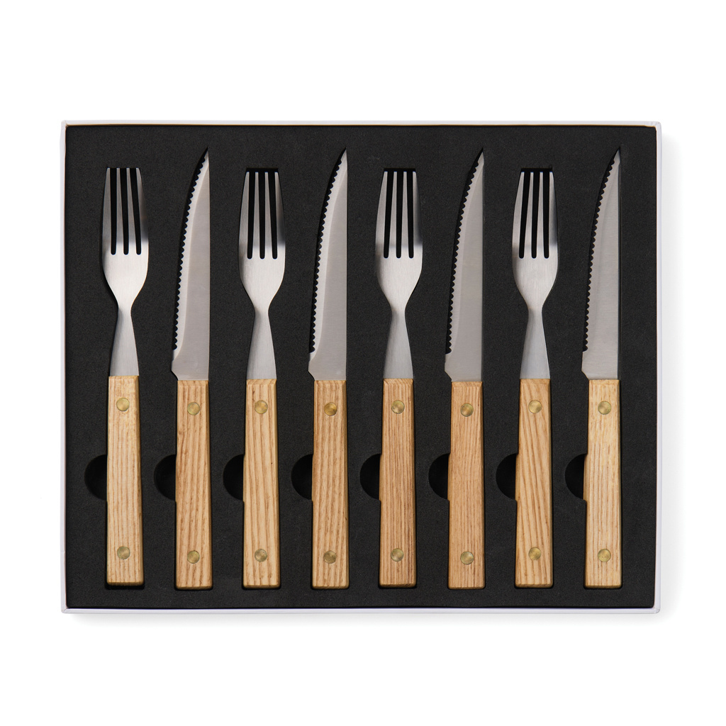Set the table with this timeless 8-piece BBQ cutlery set, designed with Scandinavian simplicity in mind. Crafted from FSC® certified ash wood and high-quality stainless steel, this set includes four sharp knives and four forks with a comfortable grip. This set is not only a pleasure to use but also a stylish addition to any barbecue or dining experience.