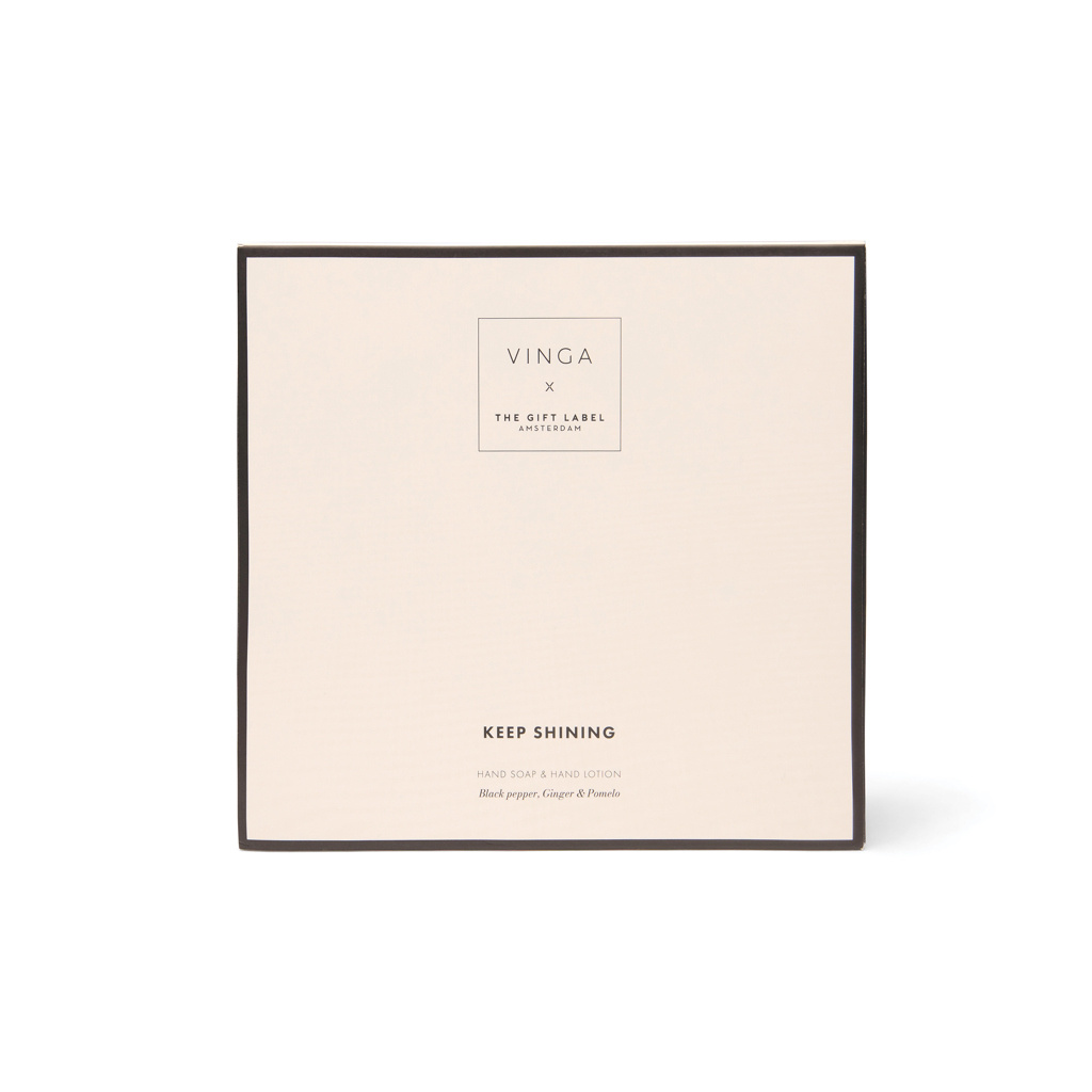 Silky smooth hands, every day. Take care of your hands with this beautifully scented set, featuring two 200 ml bottles of hand soap and hand lotion. With the warm, zesty aroma of black pepper, ginger and pomelo it leaves your hands feeling smooth, nourished and subtly fragranced. A touch people will remember. Elegantly packed in a giftbox in cream white and black.