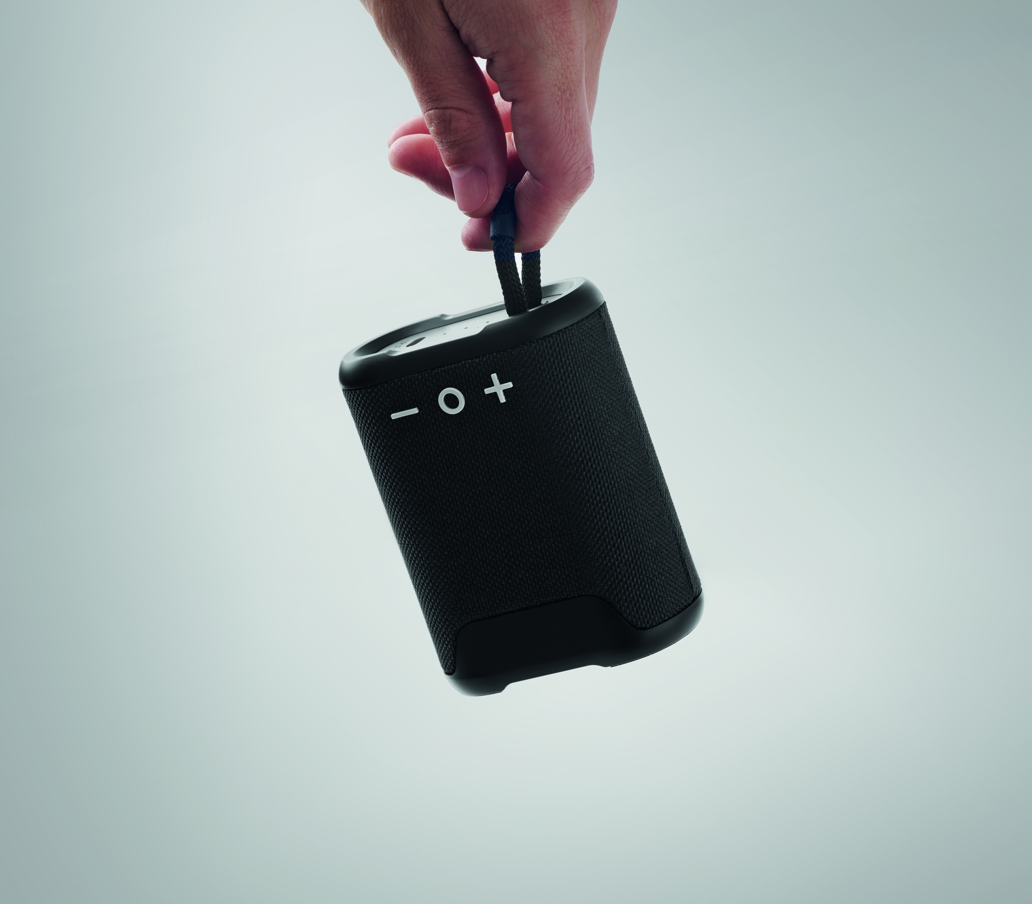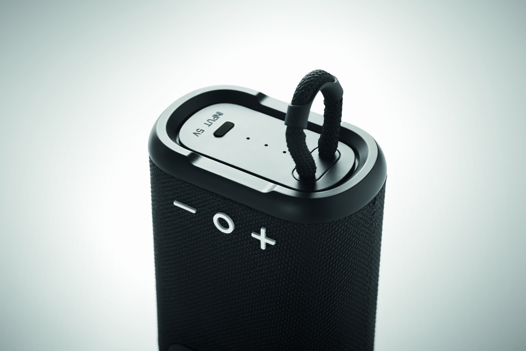 5.0 wireless speaker in ABS with 30 % hemp and 70% polyester fabric finish, IPX7 splash proof with handle. 1 Rechargeable Li-Ion 1800 mAh battery. Output data: 5W, 4 Ohm. Playing time approx. 8h.