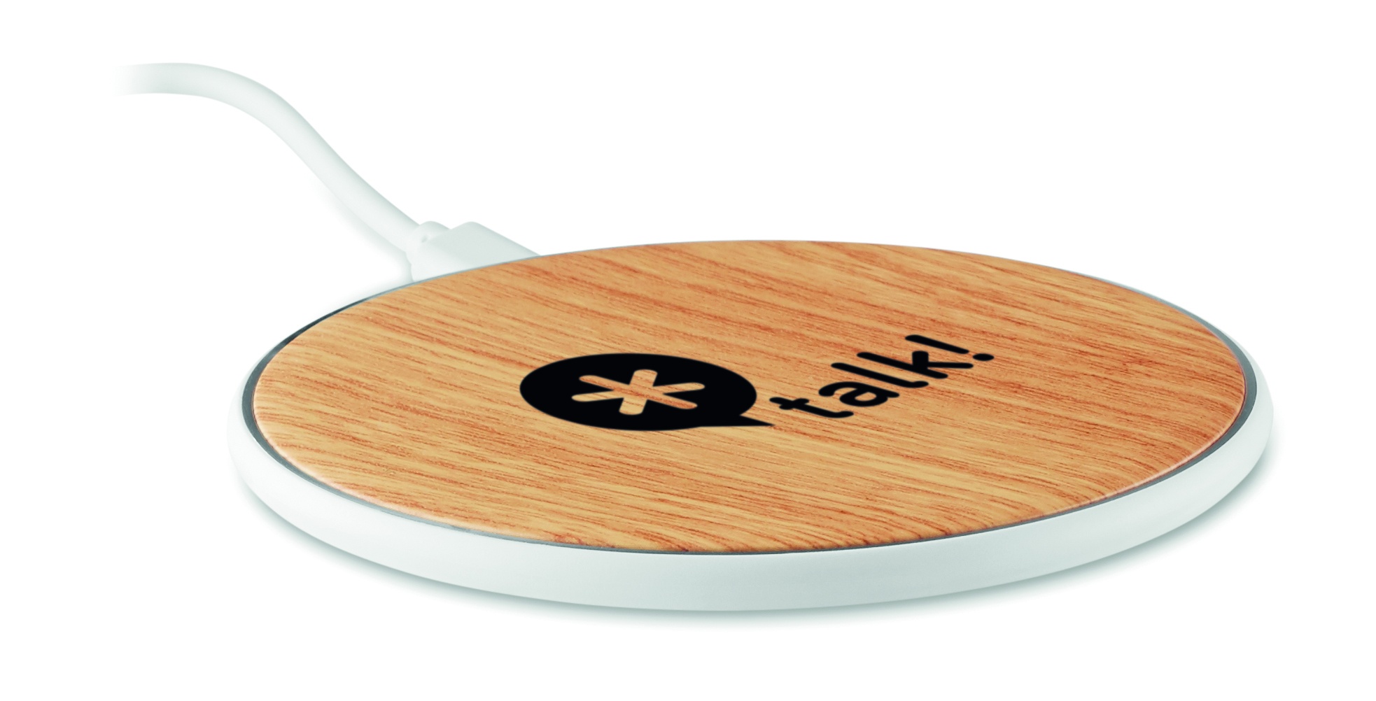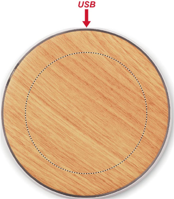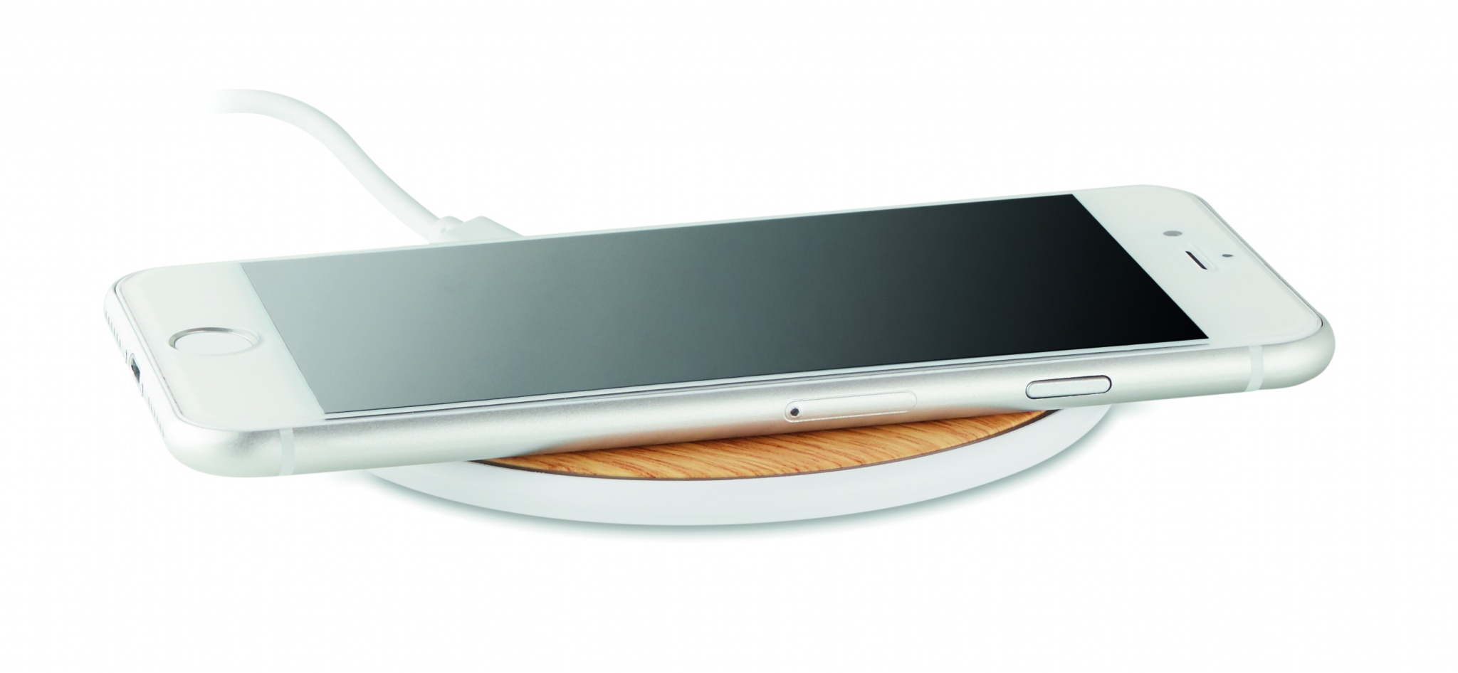 Wireless charger in ABS with bamboo look on the top. Connect device to your computer, place smartphone on it and let it charge. Output: DC5V/1A (5W). Compatible latest androids, iPhone® 8, X and newer. Bamboo is a natural product, there may be slight variations in colour and size per item, which can affect the final decoration outcome.