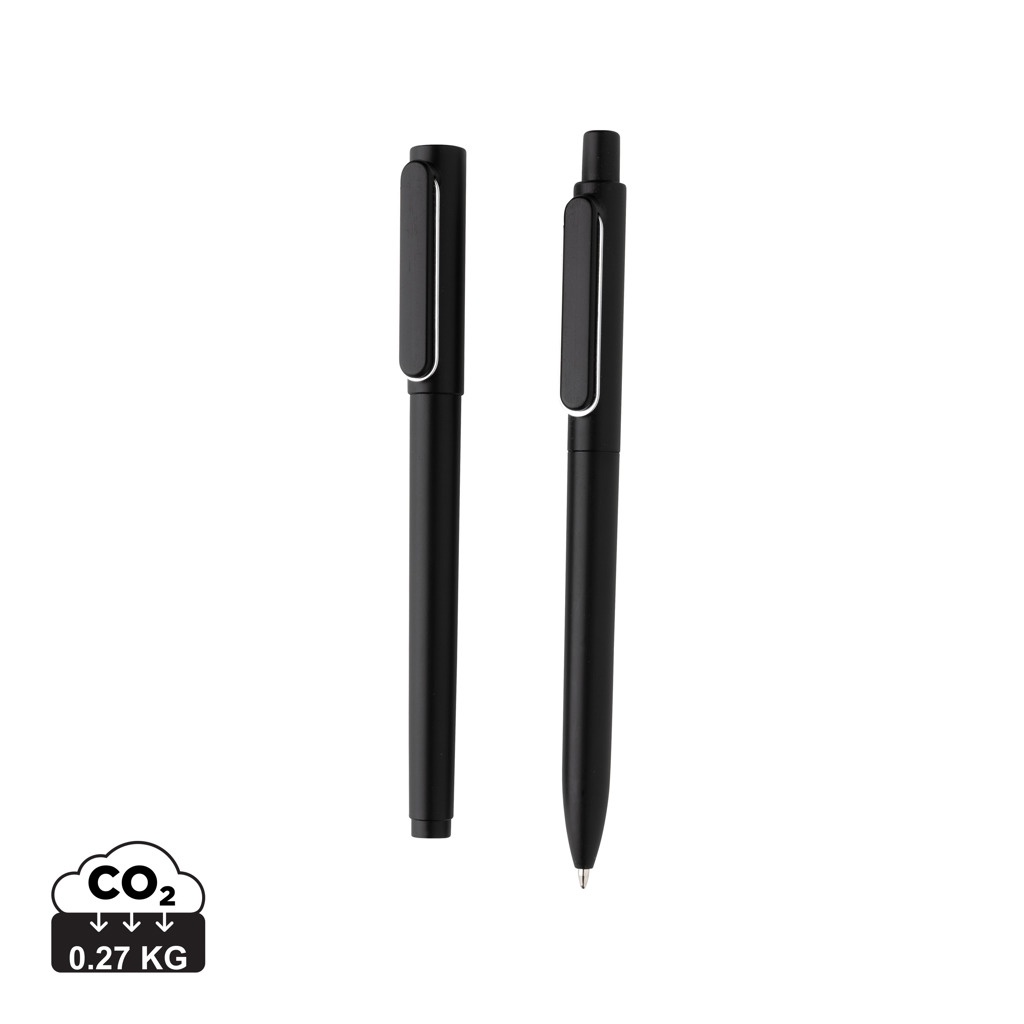 This X6 pen set features an unique metallic finish with stunning metal clip design. This set features the X6 pen next to his new brother the X6 cap pen. The X6 pen holds ca. 1200m writing length with German Dokumental® blue ink refill with TC-ball for ultra smooth writing. The X6 cap pen contains a low viscosity ink which provides even more writing smoothness. The low viscosity ink ensures more ink flow than higher viscosity inks for fluid luxurious strokes. Writing length 800 metres. Writing colour blue. Packed in a colour matching gift box.