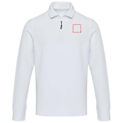 The Zeus unisex long sleeve with half zip is made from 245 g/m² piqué knit in 100% cotton for year-round wear. It features refined pick-stitch detailing, with self-fabric neck tape for added durability and side slits with self-fabric inserts for enhanced mobility. A heat transfer main label ensures label-free comfort. Equipped with AWARE™ traceability technology, this garment includes a digital product passport for verified transparency and sustainability.