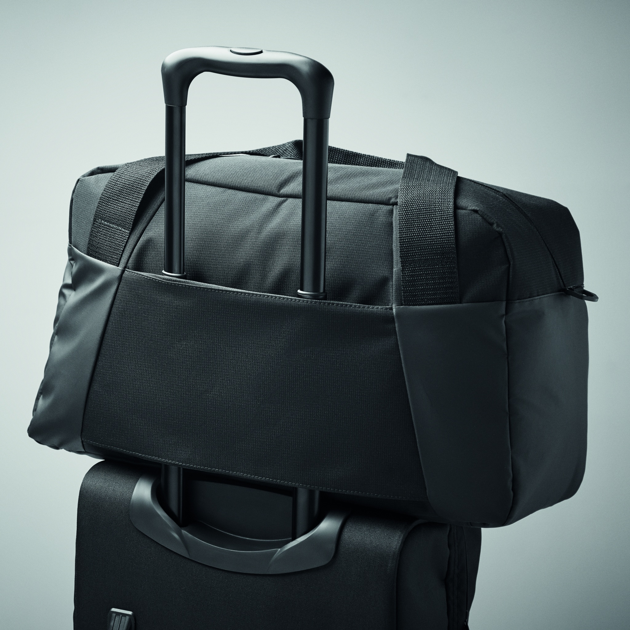 Reisi- või spordikott 300D ripstopist PU detailidega, eesmise lukuga taskuga. Sellel on sisetasku ja 2 väikest polsterdatud sahtlit. Käru hoidik tagaküljel.