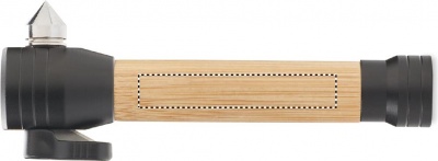 Logo trade firmakingituse pilt: 3-ühes bambusest taskulamp koos avariivasara ja turvavöölõikuriga