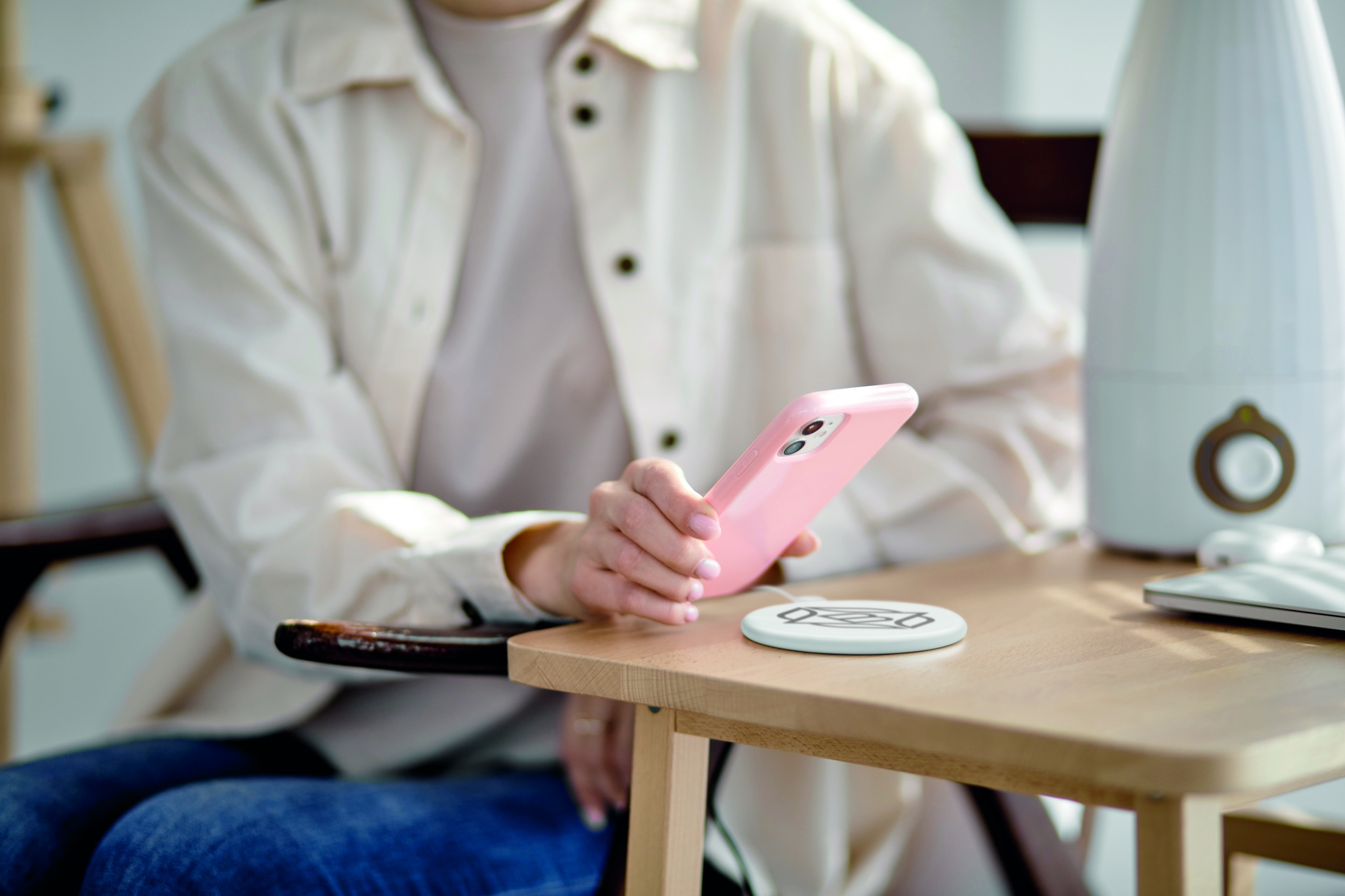 Taaskasutatud ABS juhtmevaba laadija. Laadimise alustamiseks looge ühendus arvutiga, asetage nutitelefon seadmele. Väljund: DC 9V/1.1A (10W) kiireks laadimiseks. Ühilduvad uusimad androidid, iPhone® 8, X ja uuemad.
