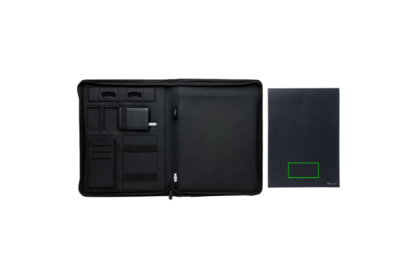See A4-formaadis portfolio-märkmik sisaldab uusimat tehnoloogiat. Esikaanel on juhtmevaba laadimisalus teie telefoni jaoks. (Androidi uusimad põlvkonnad, iPhone 8 ja uuemad). Vanemaid telefone ja tahvelarvuteid saab laadida USB-portide kaudu välise 5000 mAh toitepangaga. Sisend: 5,0V/2,1A. Väljund 1: 5,0V/2,1A. Väljund 2: 5,0 V/2,1 A. Juhtmeta väljund: 5 W. Registreeritud disain®