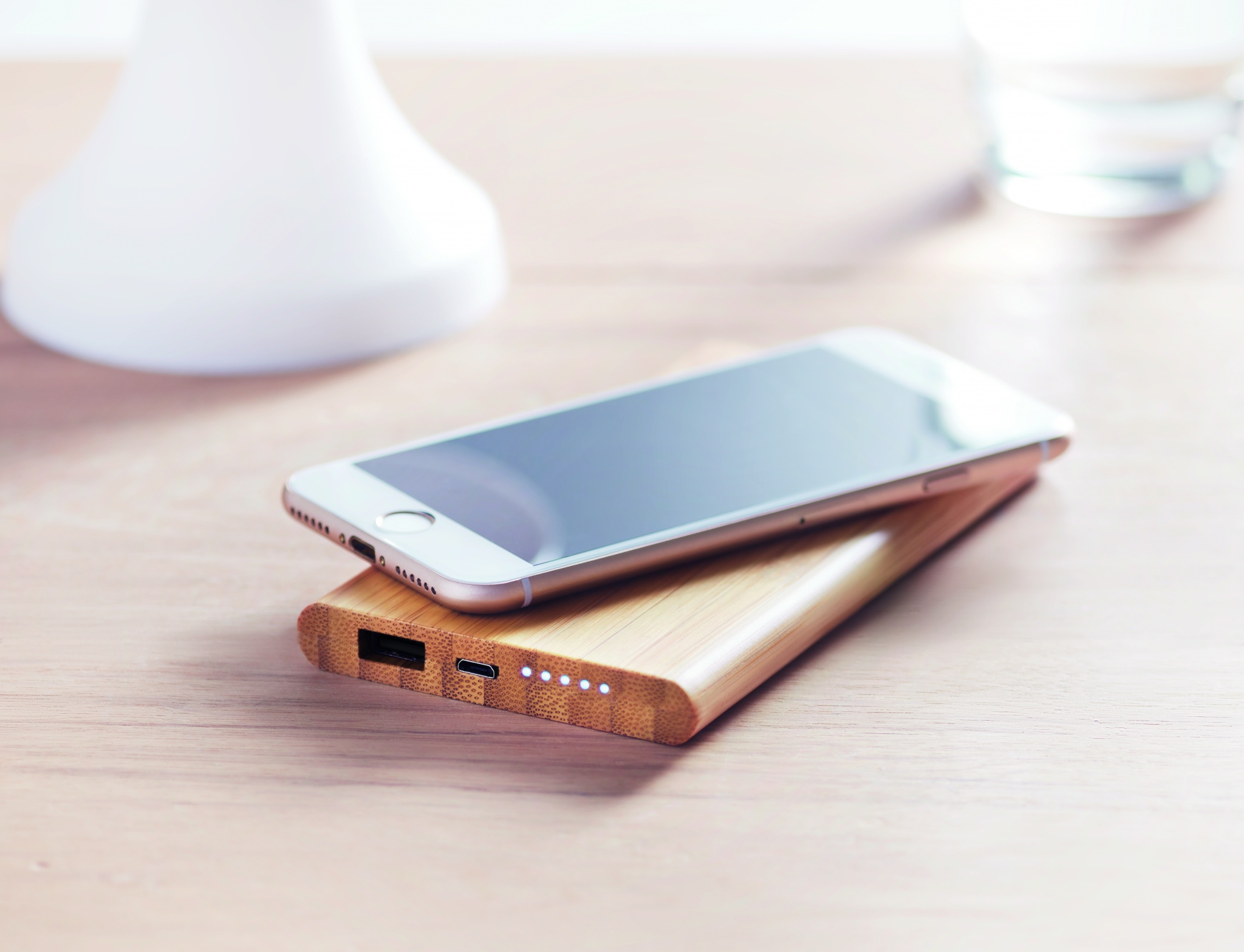 Logotrade firmakingituse foto: Bambusest juhtmevaba akupank 6000mAh ARENA