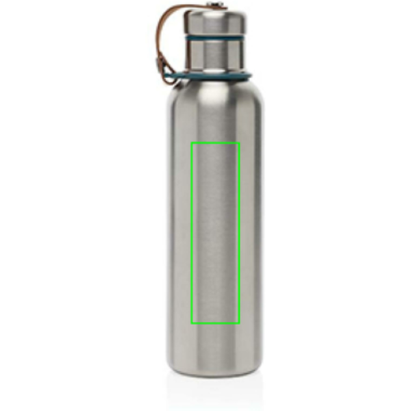 Roostevabast terasest vaakumpudel, mis hoiab joogid külmana 24 tundi või kuumana 12 tundi. Kaas on ka täielikult roostevabast terasest, mis tähendab, et vesi ei puutu kokku ühegi plastikuga. Kunstnahk toimib kandeaasa ja annab kauni disainidetaili. Ainult käsipesu