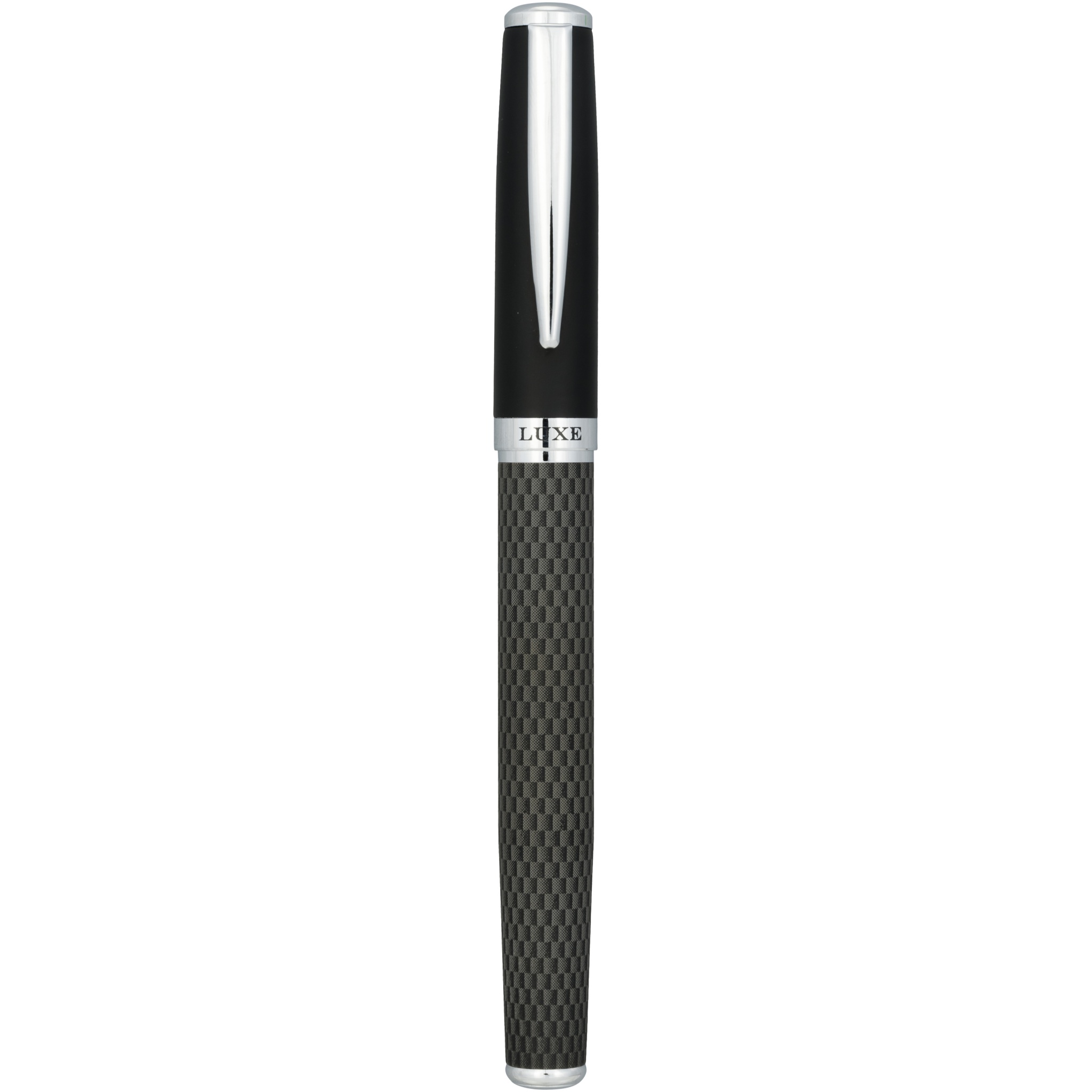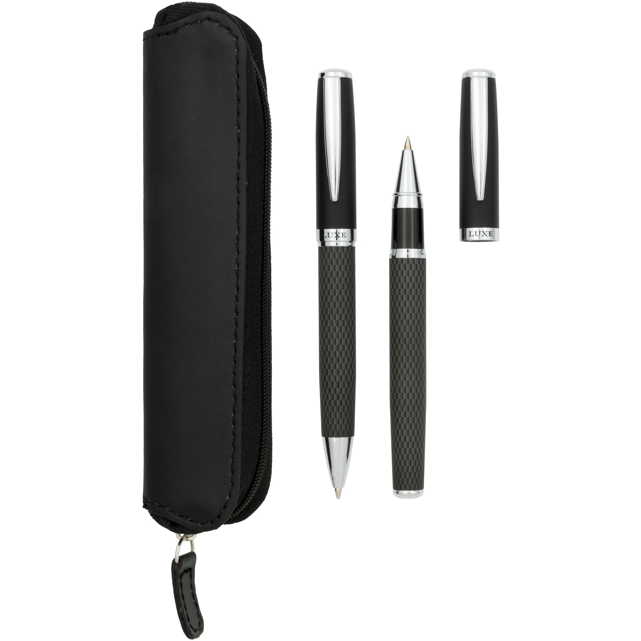 Musta värvi peenelt teistsuguse ilme saamiseks on see eksklusiivse disainiga pasta- ja rullpliiatsipaar viimistletud trükitud süsinikkiuga. Kaasa arvatud kvaliteetne kaitsekott, mis on pakitud ''LUXE'' kinkekarpi.