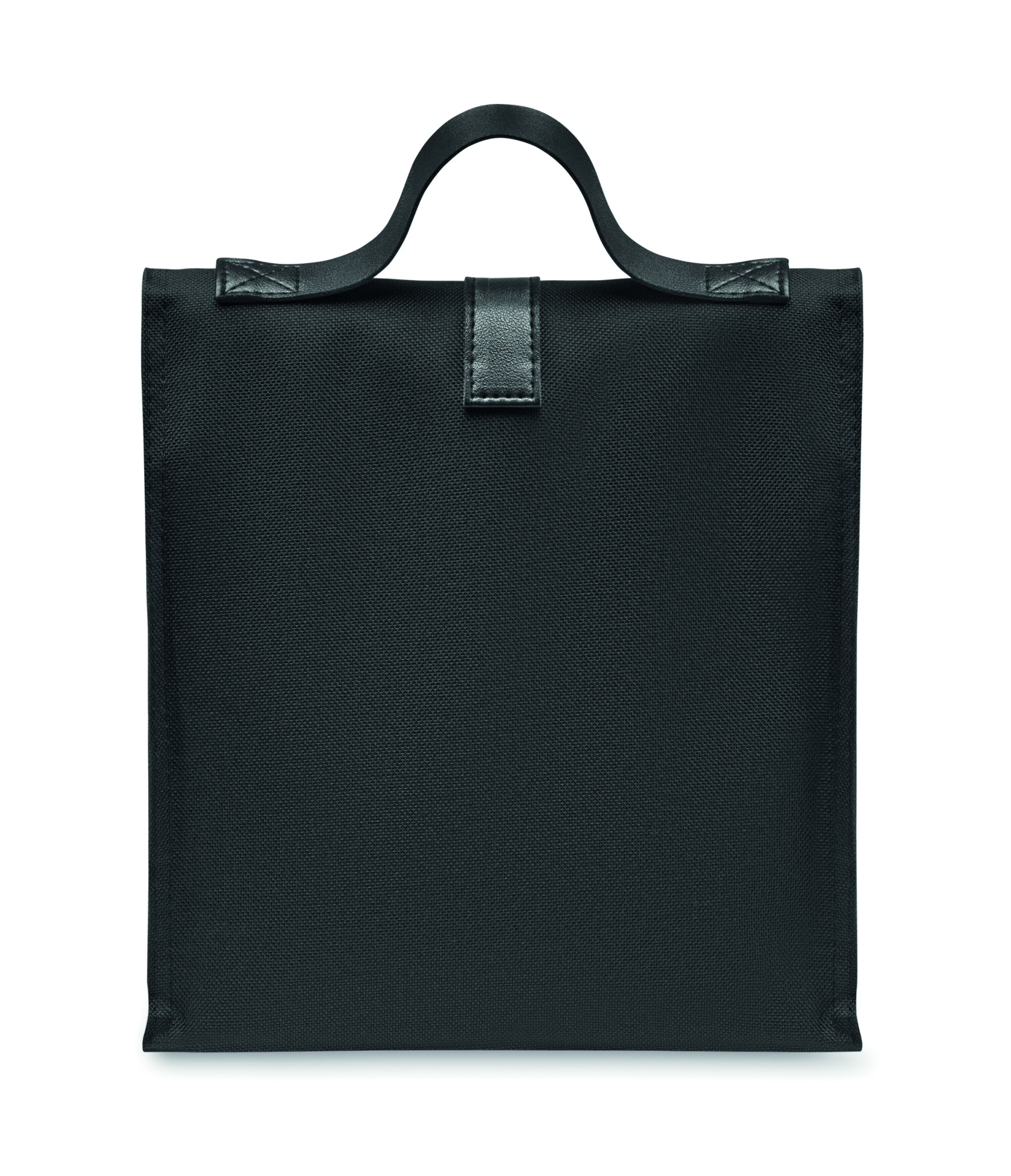 Must 600D RPET polüestrist isoleeritud rullitav lõunakott PU käepideme ja sulguriga. Isolatsioon: 3mm PE vaht PEVA-ga.