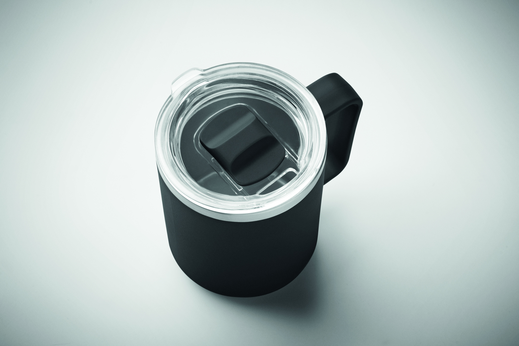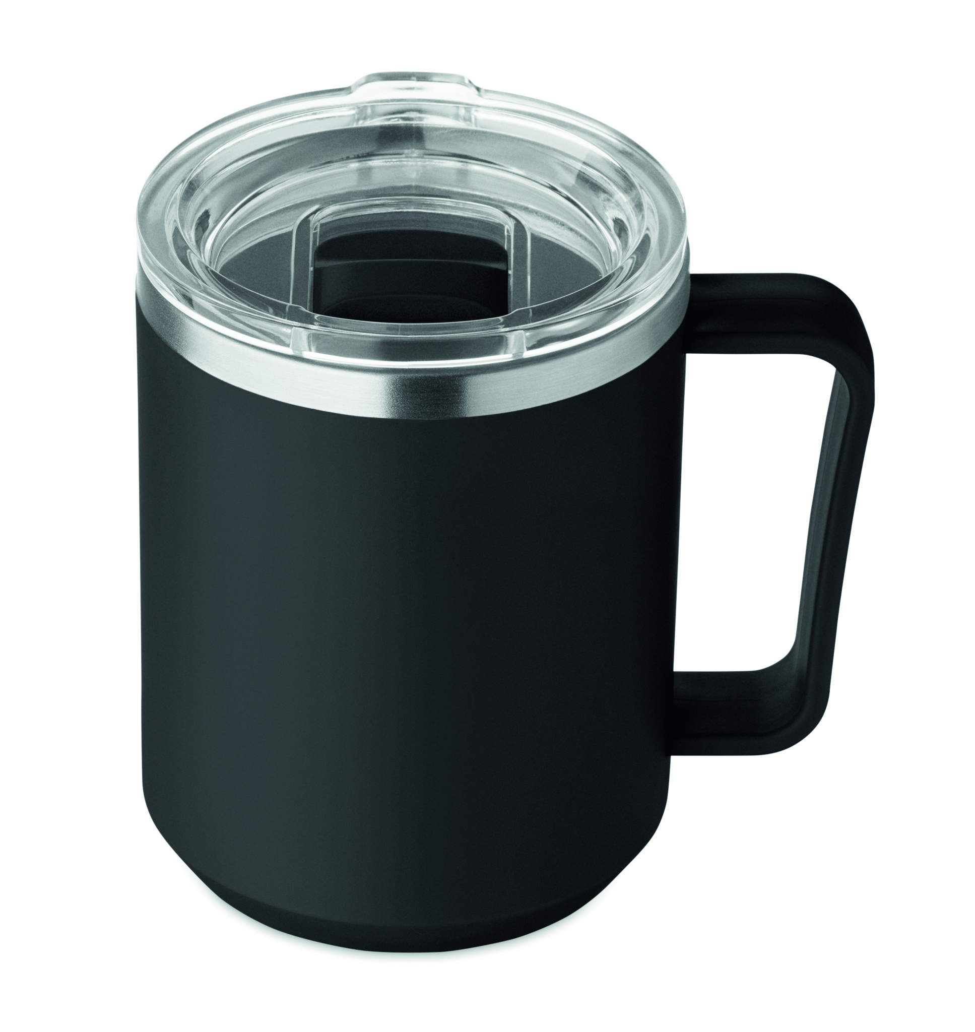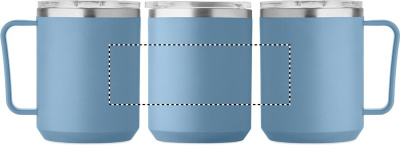 Topeltseinaga kruus, 90% taaskasutatud roostevaba teras ja 10% roostevaba teras ning välispind taaskasutatud polüpropüleen. Komplektis läbipaistev kaas. Mahutavus 400 ml.