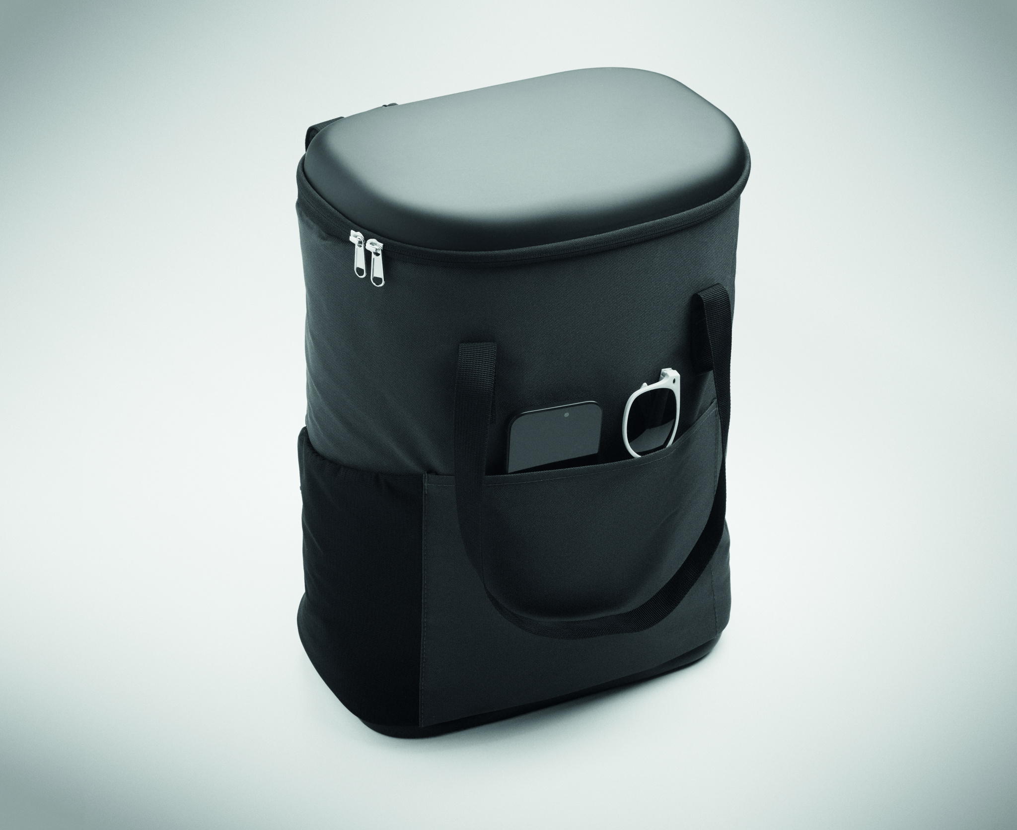 Vetthülgavast 600D RPET materjalist, PE-vahtisolatsiooni ja PEVA voodriga külmakott. Polsterdatud võrkkangast seljaosa, eesmise lukuga tasku ja külgedel asuvate võrkkangast taskutega. Mahutavus 20 l.