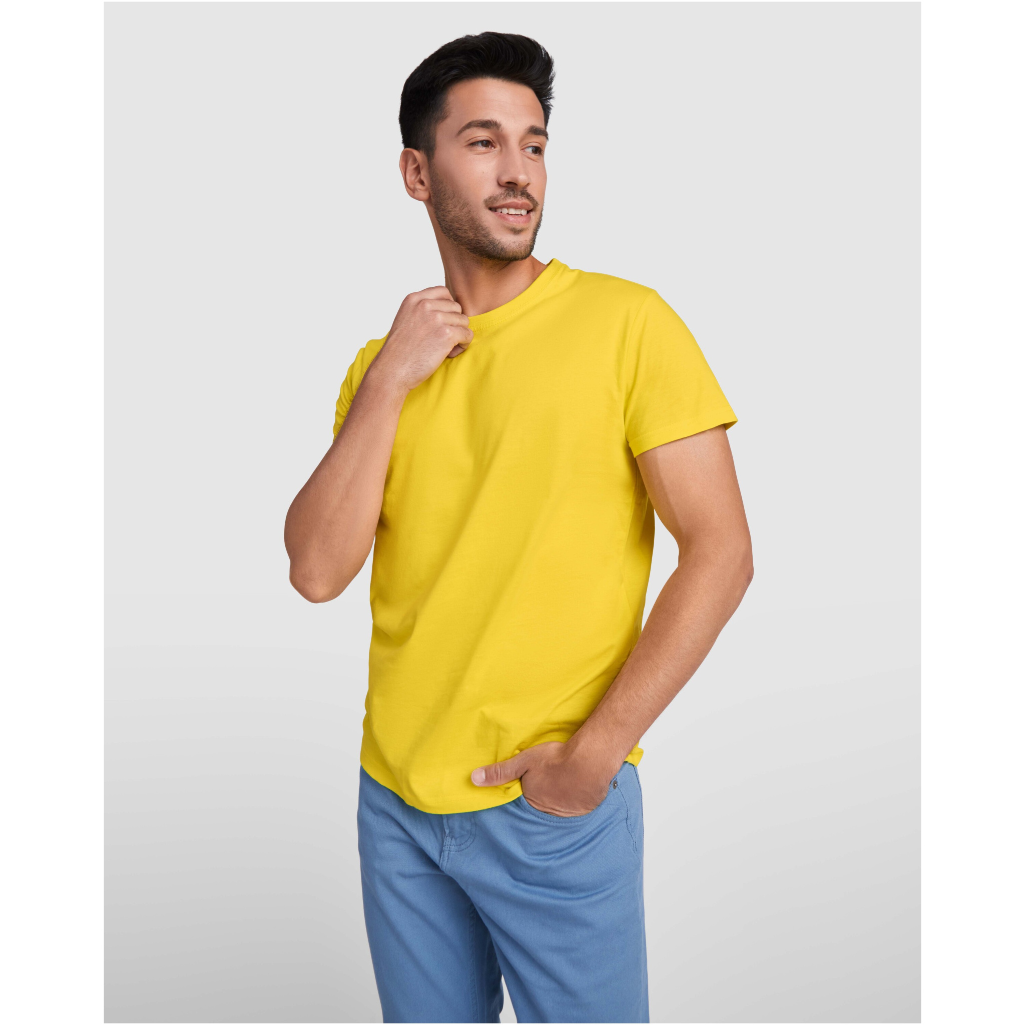 Lühikeste varrukatega T-särk tugevdatud kaetud õmblustega krael ja õlaosas. Suurused 4XL ja 5XL on saadaval ainult teatud värvitoonides. Eemaldatav etikett.