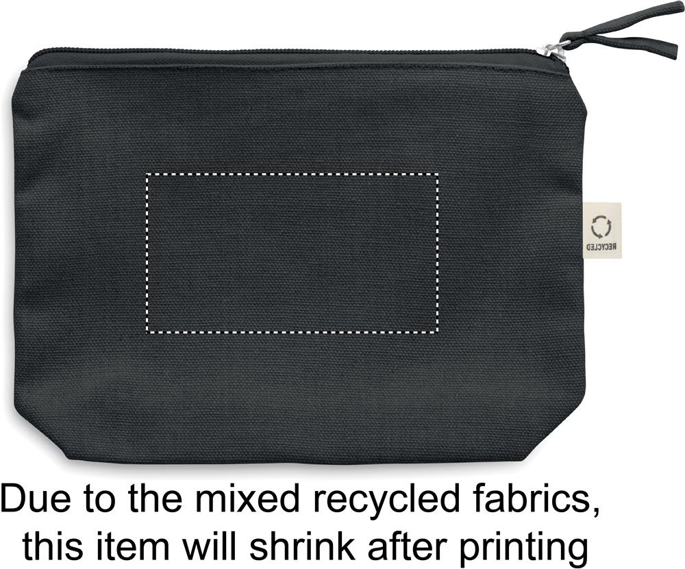 Kosmeetika- ja/või tarvikute kott taaskasutatud kangast (70% taaskasutatud puuvill ja 30% RPET polüester) koos sobiva tõmblukuga. 320 gr/m².