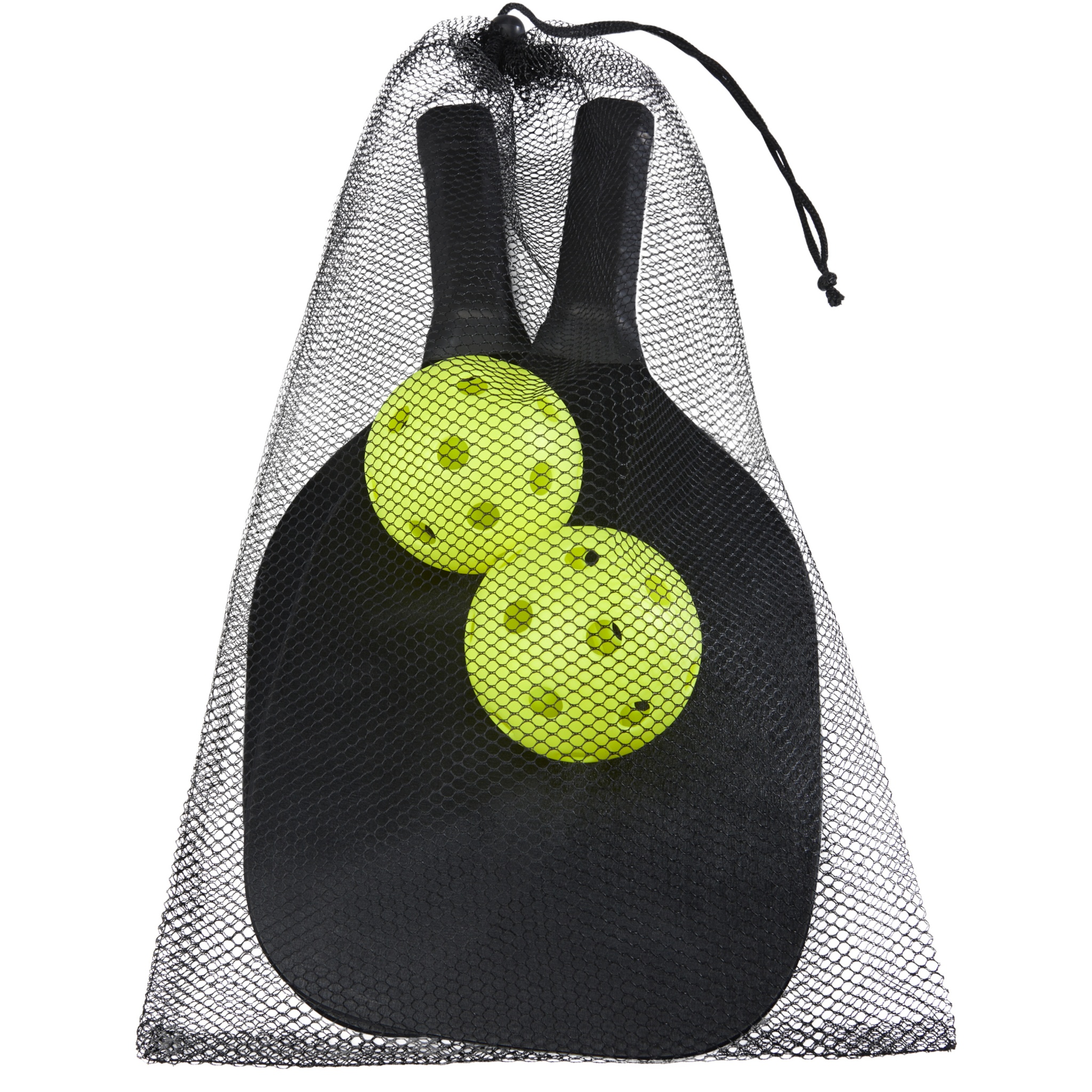 See paplipuust valmistatud aerukomplekt pakub palju lõbu ja liikumist kahele rannas, pargis või aias. Mõlad on mõõtudega 40 x 20 x 0,7 cm ja need on värvitud mustaks, pakkudes suure pinna mistahes logo trükkimiseks. Käepidemed on mähitud PU-teibiga, mis annab intensiivse mängu ajal maksimaalse haarde. Komplektis on 2 PP materjalist kuuli ja see on pakendatud võrgust polüestrist hoiukotti suurusega 45 x 26 cm.