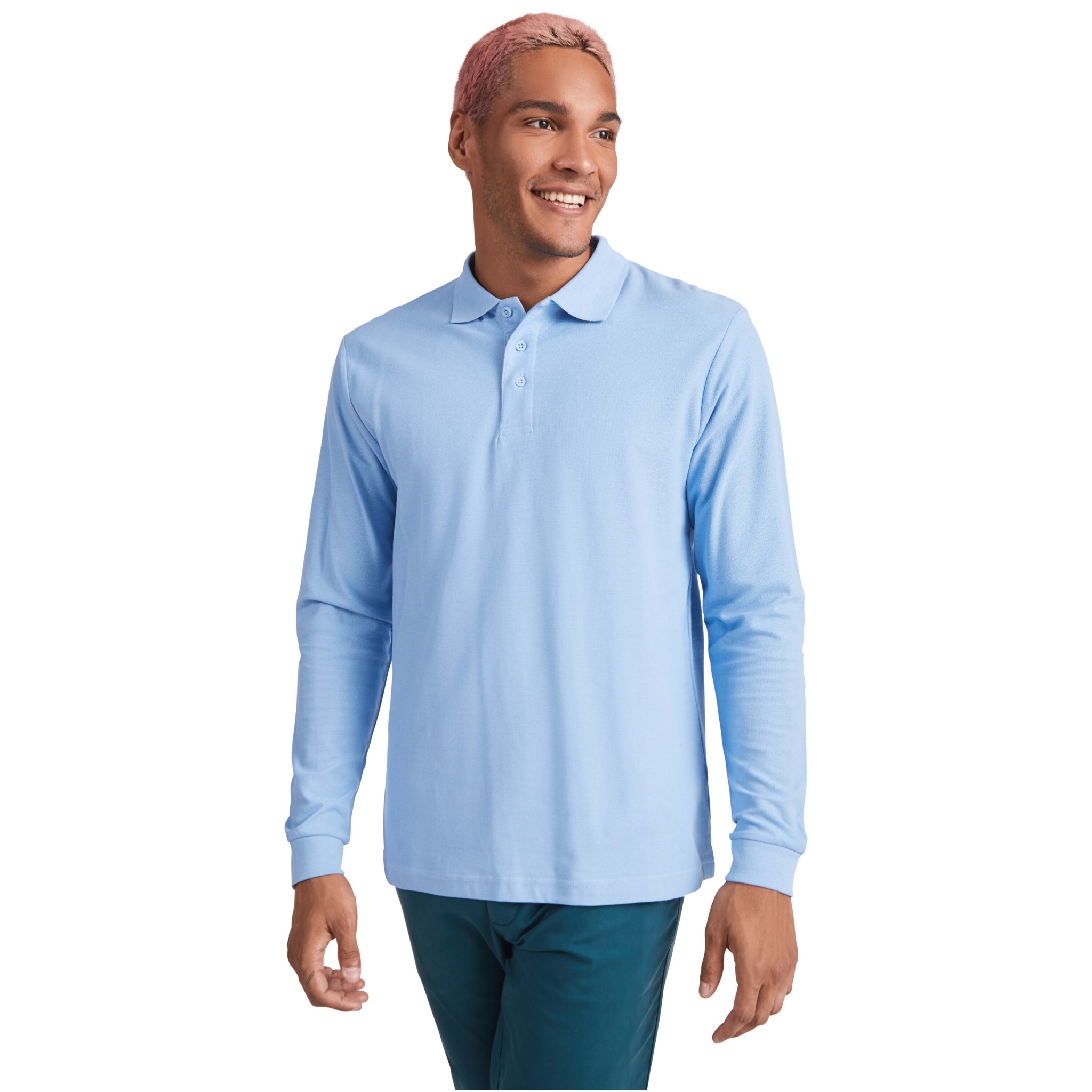 Estrella pikkade varrukatega meeste polo, Türkiissinine
