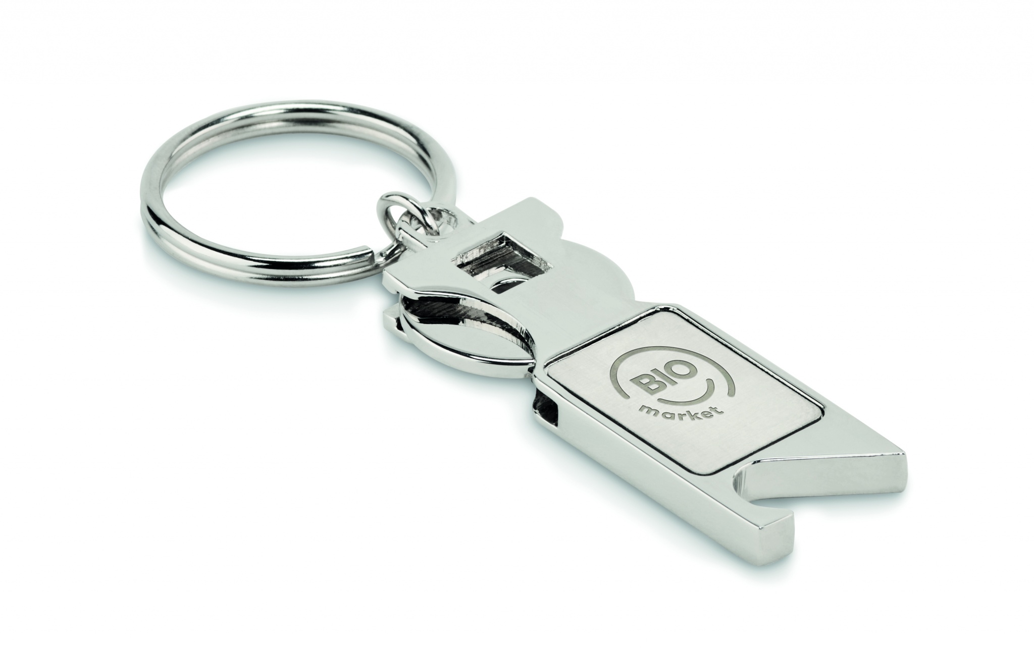 Tsingisulamist võtmehoidja koos euro märgi ja pudeliavajaga.