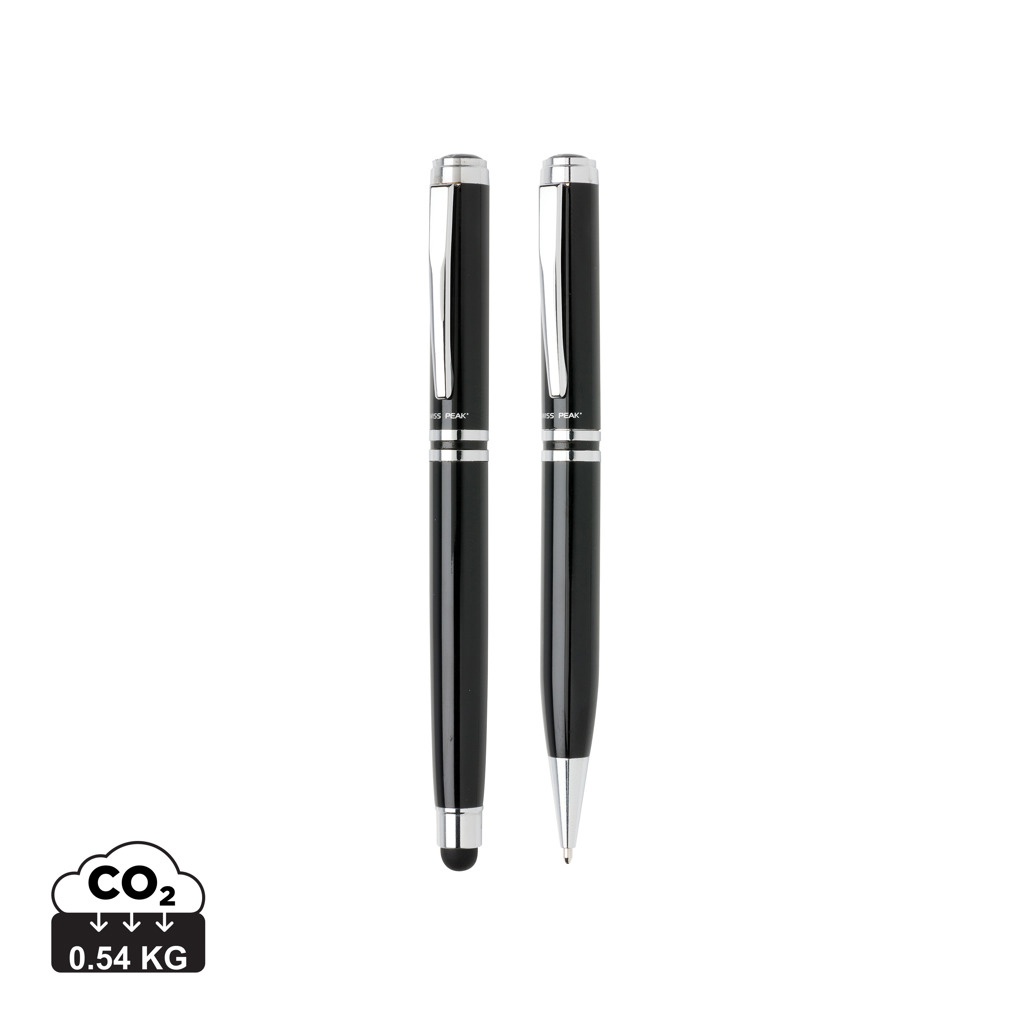 Autentne pliiatsikomplekt, mis kannab kõiki klassikalise kvaliteedi tunnuseid. Kvaliteetne raske messingist metallist rullpall pliiatsi ja pastapliiatsiga Swiss Peak kaubamärgiga. Kaasa arvatud esmaklassiline PU-nahast kott ja kinkekarp. Sinine tint.