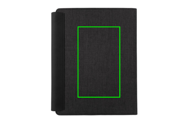 See A4 portfell pakub juhtmevaba laadimise võimalust. Kaasasolevat välist toitepanka saab kasutada ka iseseisvalt. Stiilses portfellis on sisseehitatud juhtmevaba laadimistelefoni alus, elastne pliiatsiaas, kolm visiitkaardihoidikut ja lisataskud. Märkmikus on 20 lehte (80 gsm) kreemikat joonelist paberit. Valmistatud polüestri ja PU-naha segust. Sisend: 5V/2A; Väljund: 5V/2A. Juhtmeta sisend 5V/2A, väljund 5V/1A. Saadaval täisvärvilises kinkekarbis.