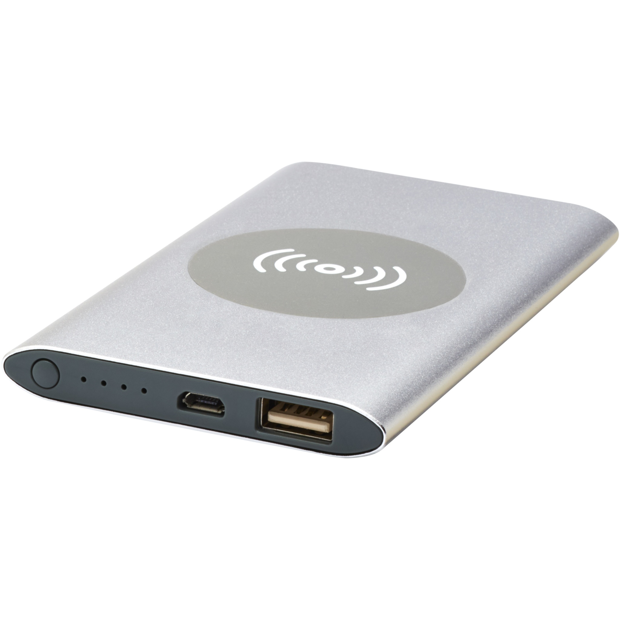 Alumiiniumist korpusega 4000 mAh toitepank. Toetab 5 W juhtmevaba laadimist ja on varustatud ka Micro USB väljundiga, mis võimaldab kaabliga laadimist. 4000 mAh liitiumpolümeerakuga saab nutitelefoni täielikult laadida. Toiteindikaator, mis näitab kogu aeg energiataset. Mikro-USB-sisend: 5V/2A Väljund: 5V/2A. Juhtmeta väljund 5W. Kaasa arvatud PVC-vaba TPE plastikust laadimiskaabel. Tarnitakse standardses kinkekarbis.