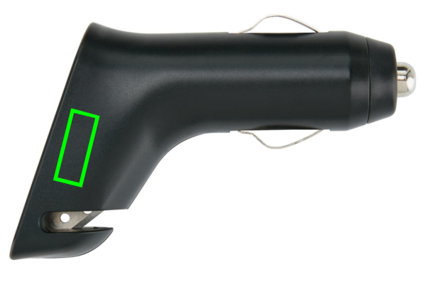 Kahe USB-pordiga autolaadija, millega saab laadida korraga kahte mobiilseadet. See laadija sisaldab ka rihmalõikurit ja aknamurdjat hädaolukorras. Väljund: 5V/2,1A.