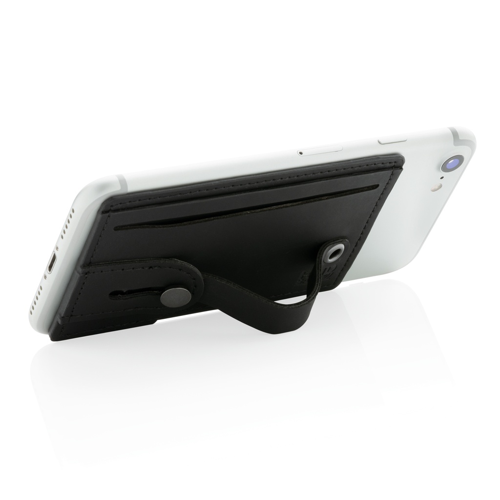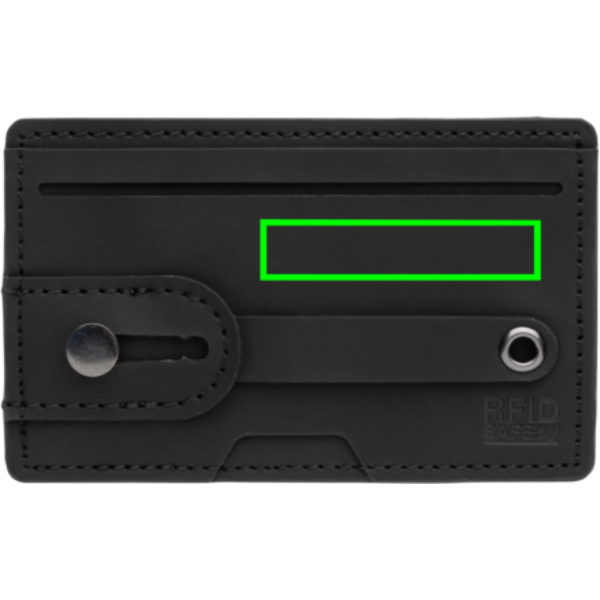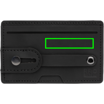 PU materjalist RFID kaardi rahakott, mida saab kasutada ka telefonihoidja ja alusena. See RFID-kaardi omanik mahutab kuni 2 pangakaarti või ID-kaarti ning kaitseb neid volitamata skannimise ja pettuste eest. Tagaküljel olev kleeplint võimaldab kleepida kaardihoidja tasase pinnaga mobiili külge. Esemel on rihm, mis toimib nii hoidiku kui ka alusena.