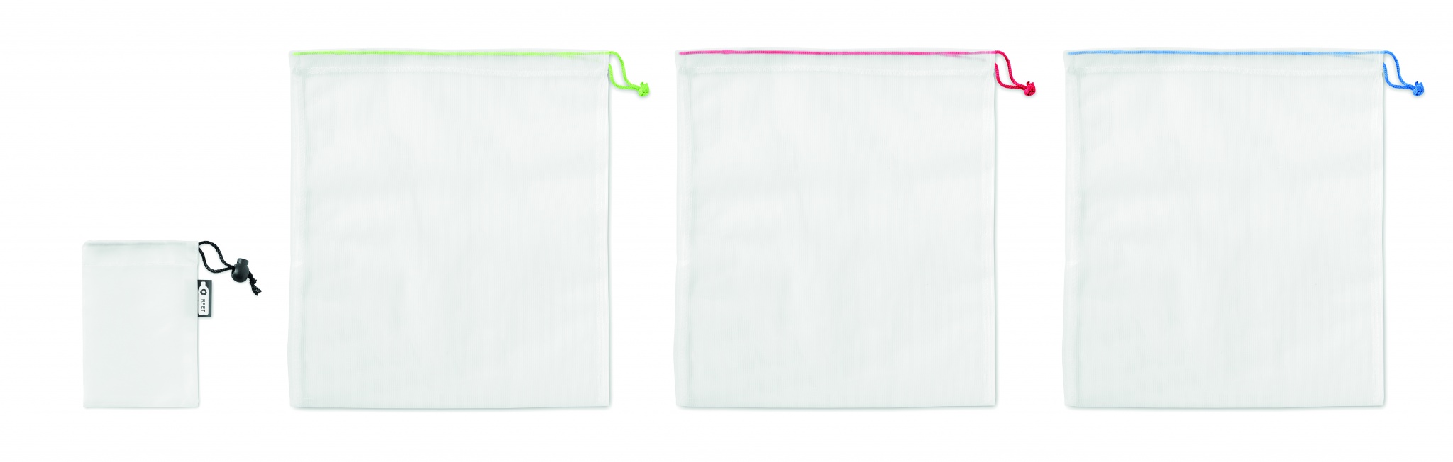 Komplektis 3 RPET võrgust toidukotti, Valge