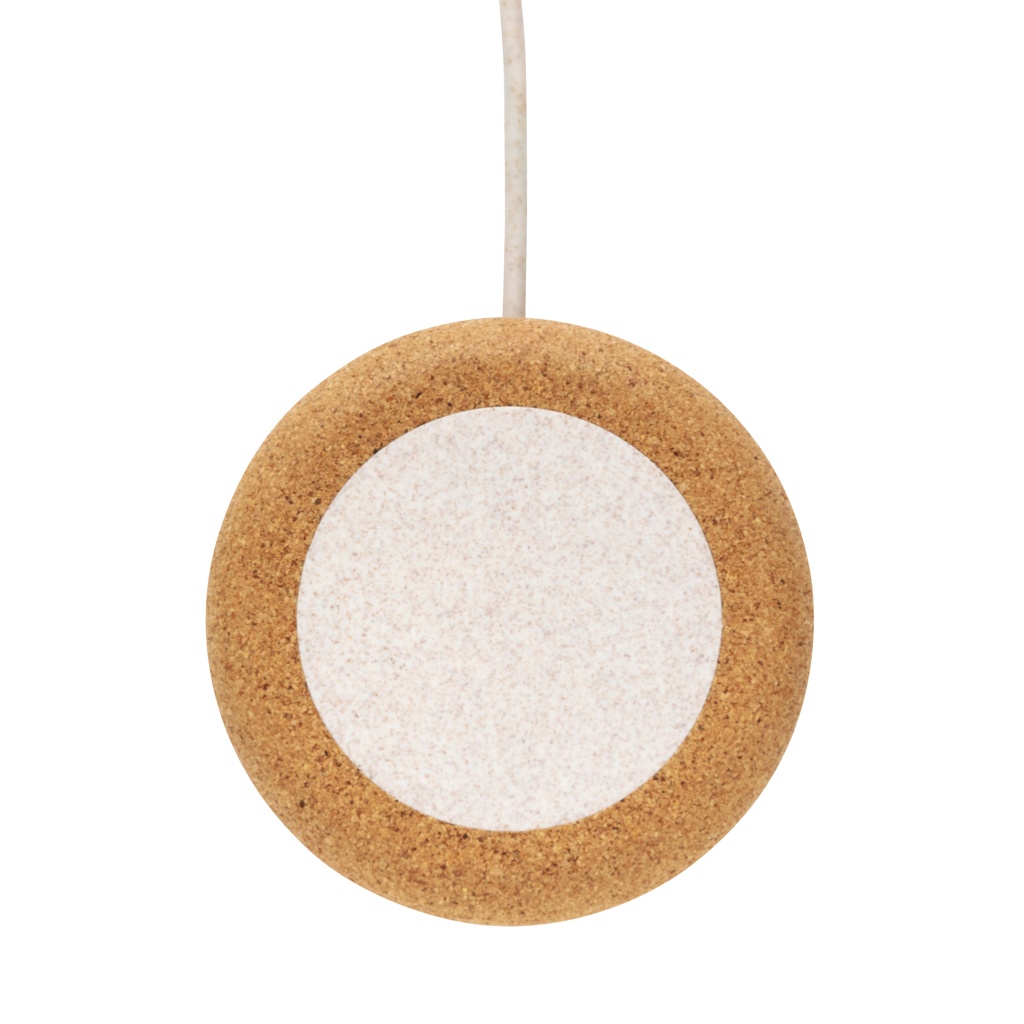 5W juhtmevaba laadija nisukõrrega (35%), mis on segatud ABS-i ja naturaalse korgiga. Integreeritud 120 cm nisukõrre/tpe kaabliga otsekasutuseks. Ühildub kõigi QI-toega seadmetega, nagu Android uusim põlvkond, iPhone 8 ja uuemad. Sisend: 5V/2A; Väljund: 5/1A - 5W. Toode ja tarvikud 100% PVC-vaba.