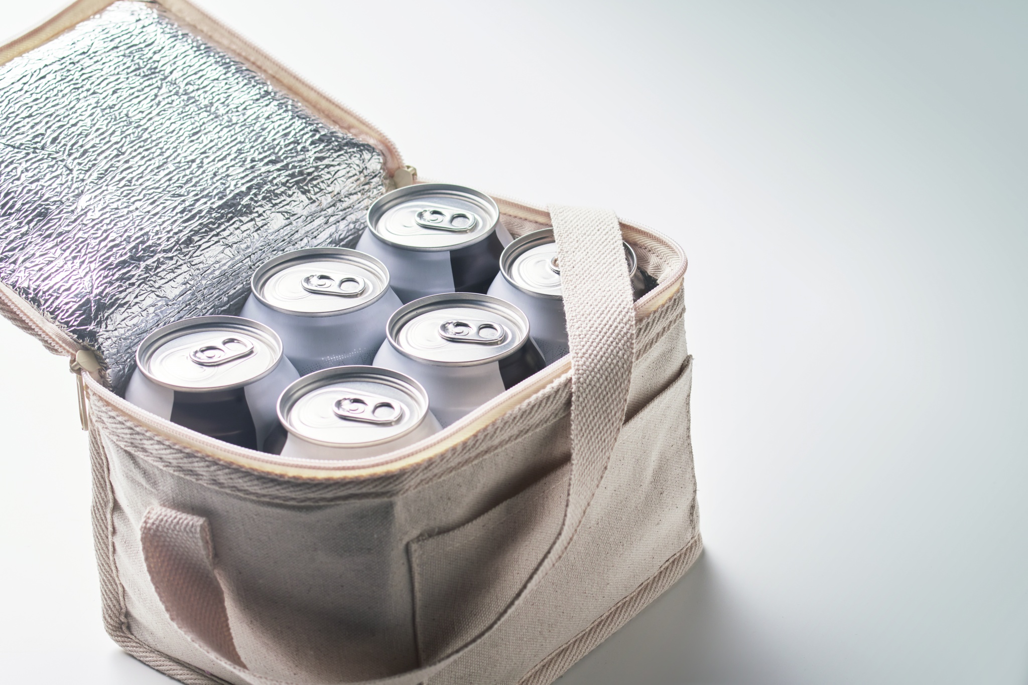 Puuvillane 280 gr/m² esitaskuga külmakott. 3 mm isolatsiooniga alumiiniumlamineeritud foolium. Mahutavus: 3L.