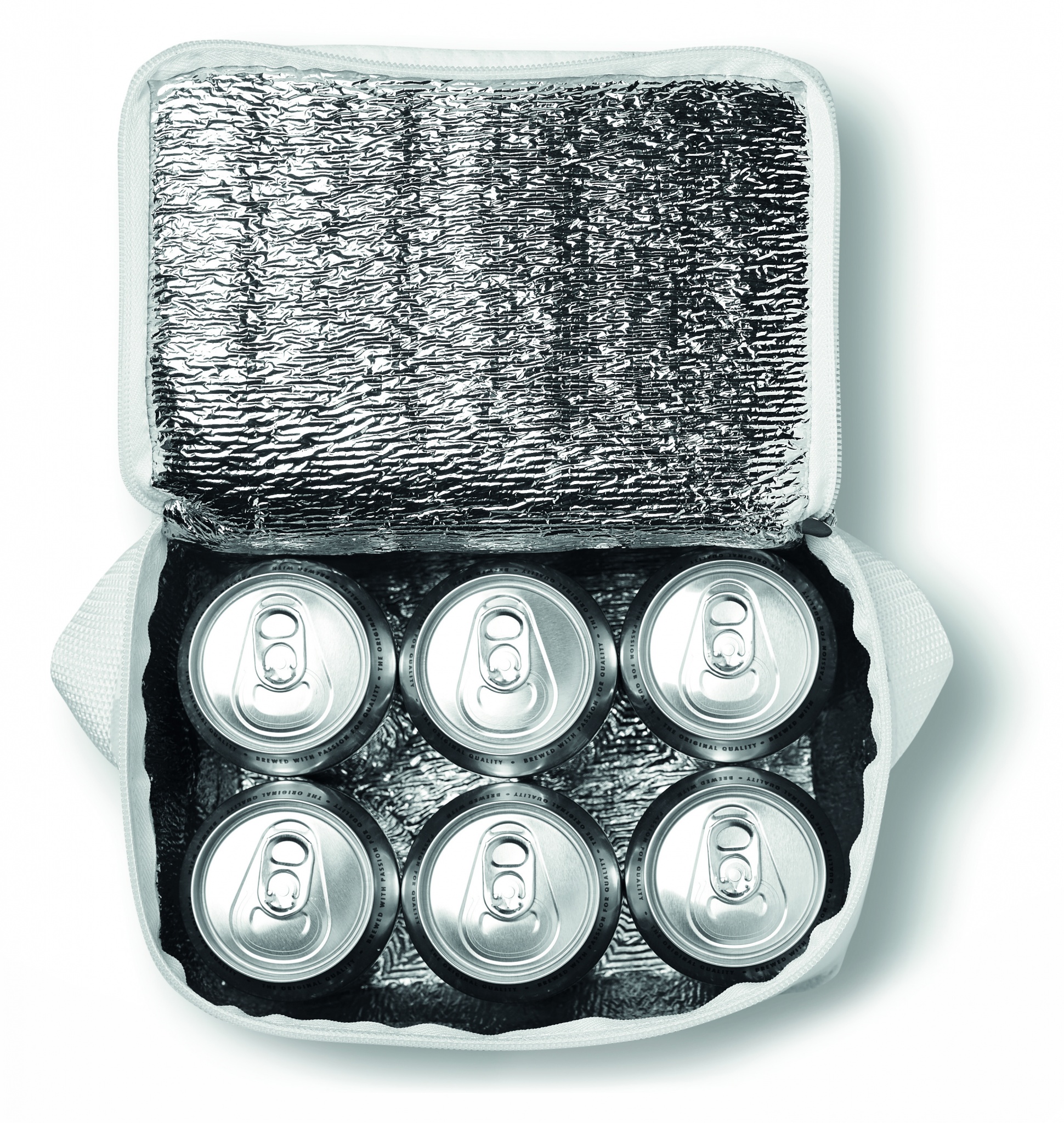 Külmekott 6 purgile 210 polüestrist. Valgete mittekootud kaunistustega. 80 gr/m². Isolatsioonimaterjal: alumiiniumfooliumiga lamineeritud vaht. Mahutavus 3L.