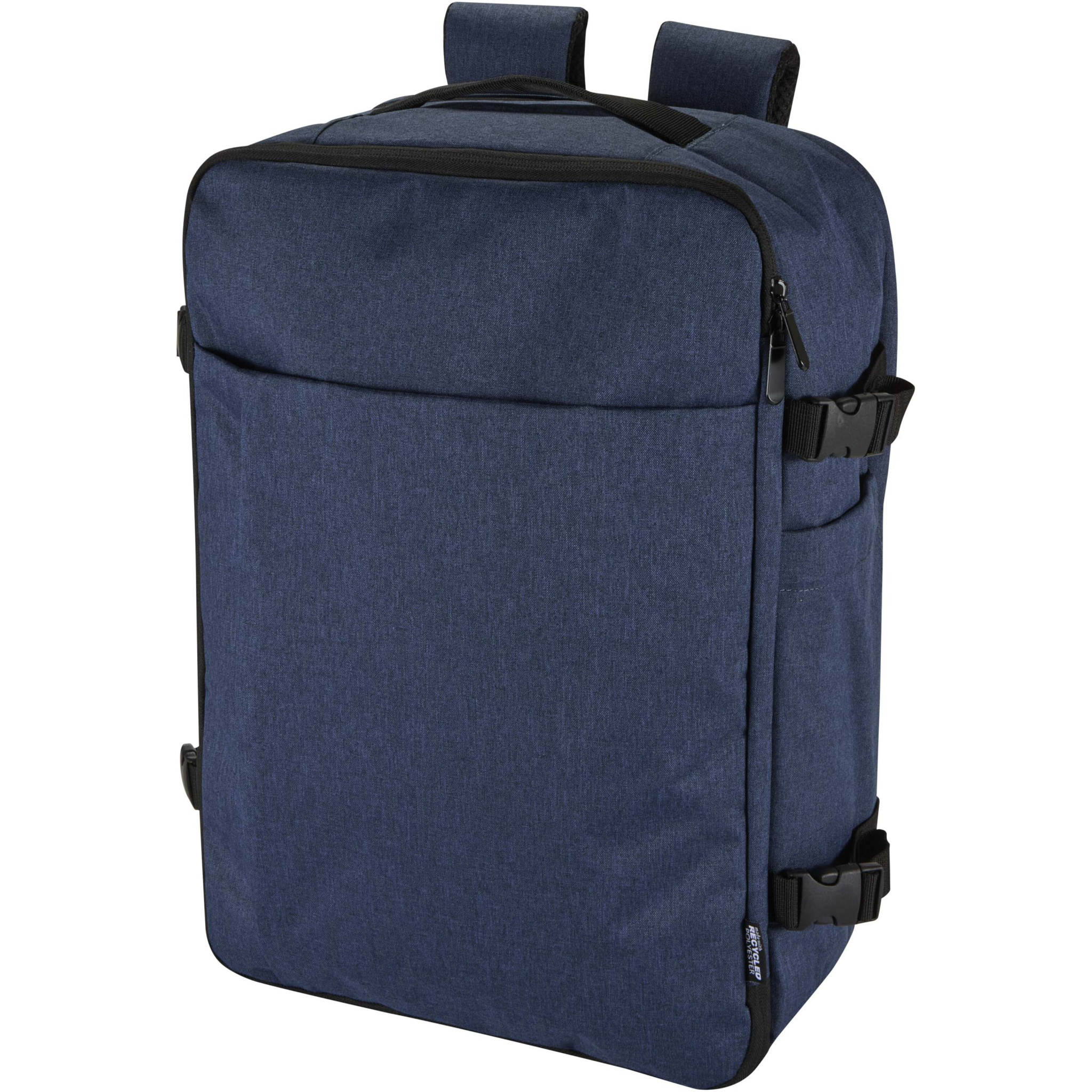 GRS-sertifikaadiga taaskasutatud polüestrist ja RPET-voodriga 17-tolline käsipagasi seljakott on loodud vastama lennufirmade käsipagasi nõuetele, muutes selle ideaalseks reisikaaslaseks. Sellel on spetsiaalne sülearvuti sahtel kuni 17-tollistele seadmetele, avar põhiosa elastsete rihmade ja võrgust vaheseintega asjade turvaliseks ja organiseerituks hoidmiseks ning kaks suurt lukuga esitaskut. Mugavuse ja käepärasuse tagamiseks on seljakotil hingav tagapaneel, kanderihm, reguleeritavad õlarihmad risti rinnal asuva rihmaga ning nii ülemised kui ka külgmised käepidemed mitmekülgsete kandmisvõimaluste tagamiseks. See seljakott sobib ärireisideks, kaugtööks või nädalavahetuse reisideks ning ühendab endas elegantse disaini praktilise funktsionaalsusega.