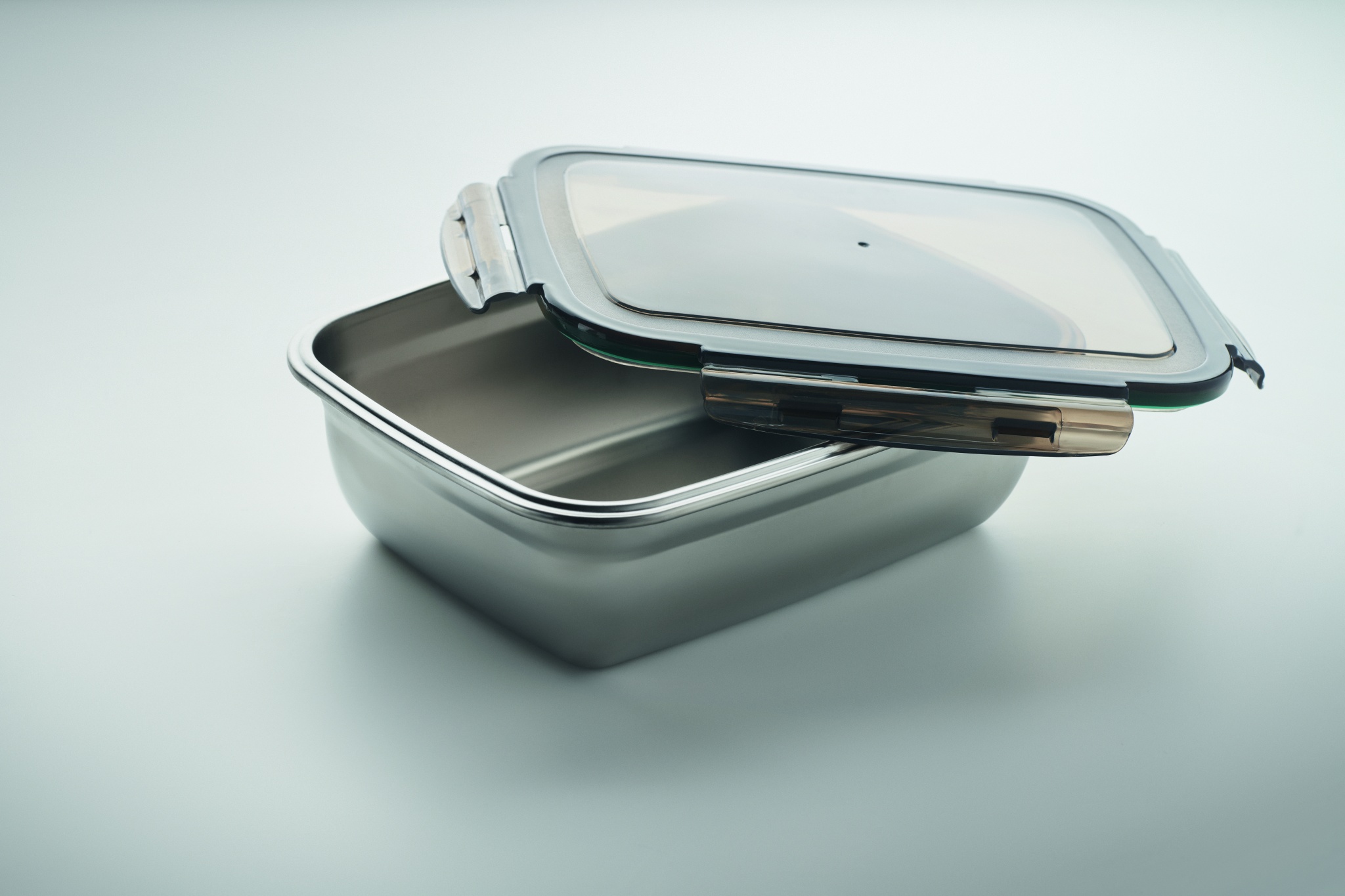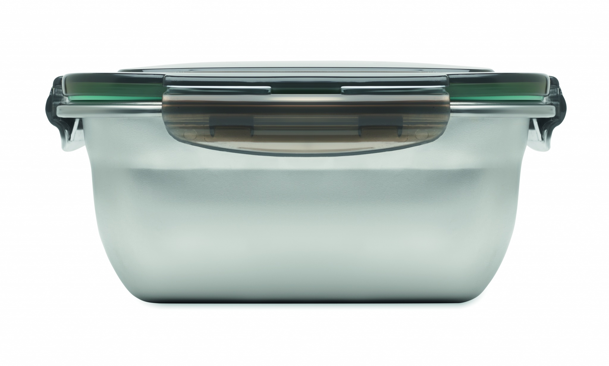 Taaskasutatud roostevabast terasest lõunasöögikarp taaskasutatud PP kaanega ja 4 küljekinnitusega. Kaasa arvatud eraldaja. Mahutavus: 1500 ml.