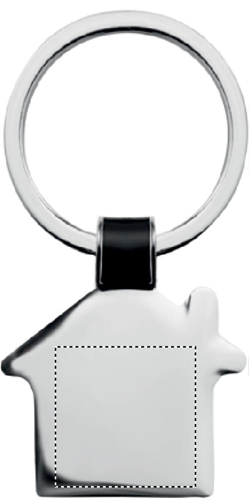 Majakujuline metallist võtmehoidja, läikiv nikkelviimistlus.