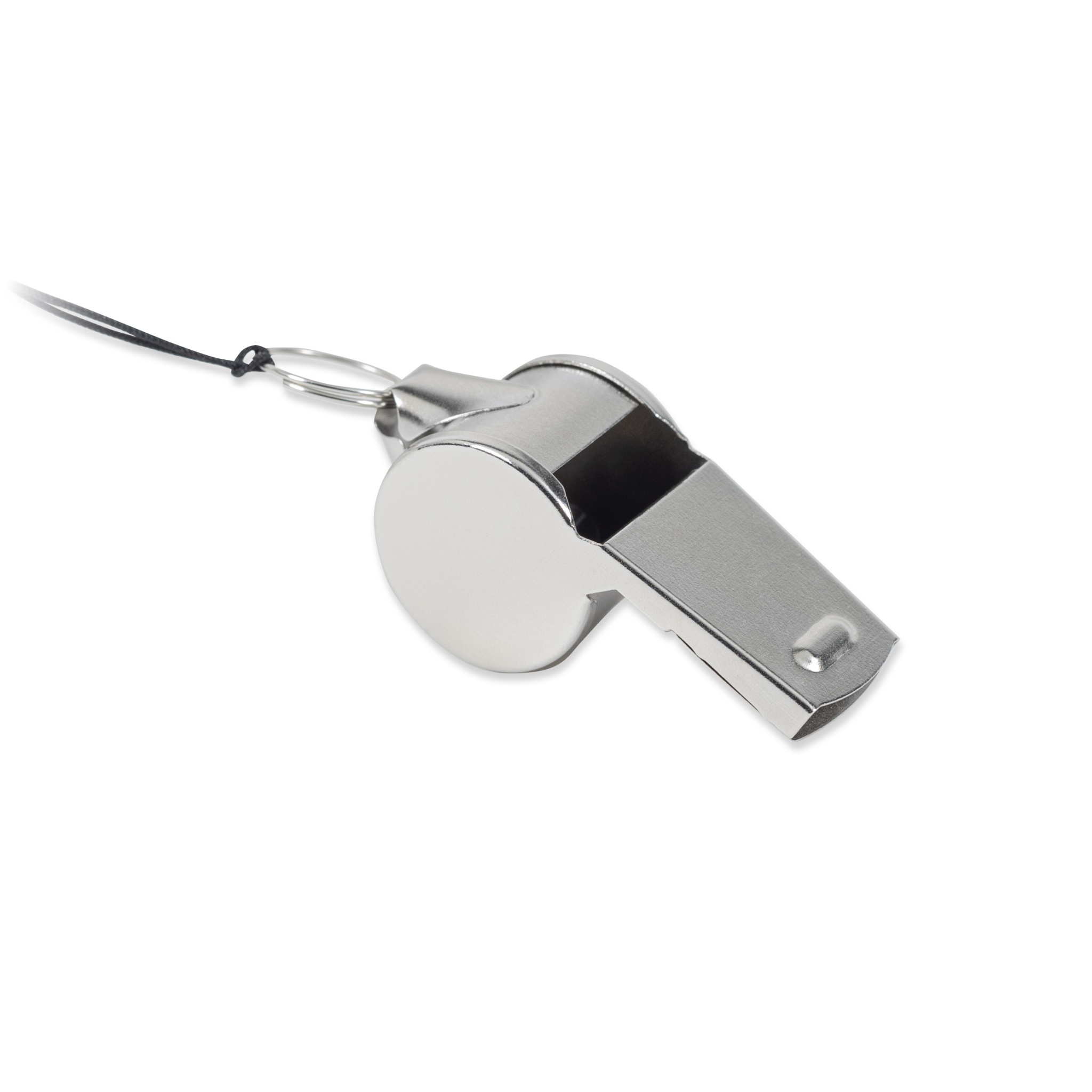 Turvapandlaga kaelapaela külge kinnitatud metallist vile.