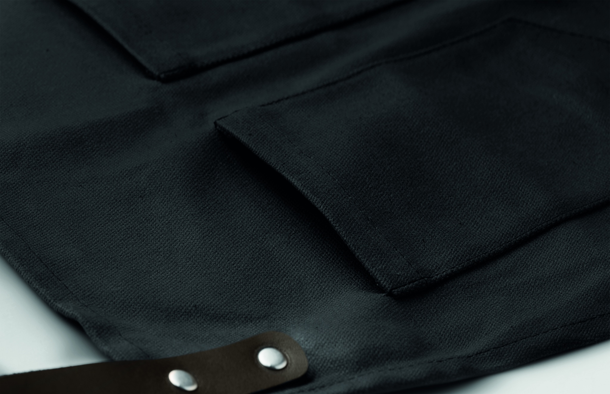 Vahatatud lõuendist põll nahkdetailidega, reguleeritav rihm 2 rinnatasku ja 1 suure madala tasapinnaga taskuga. 12 untsi vahatatud lõuend.