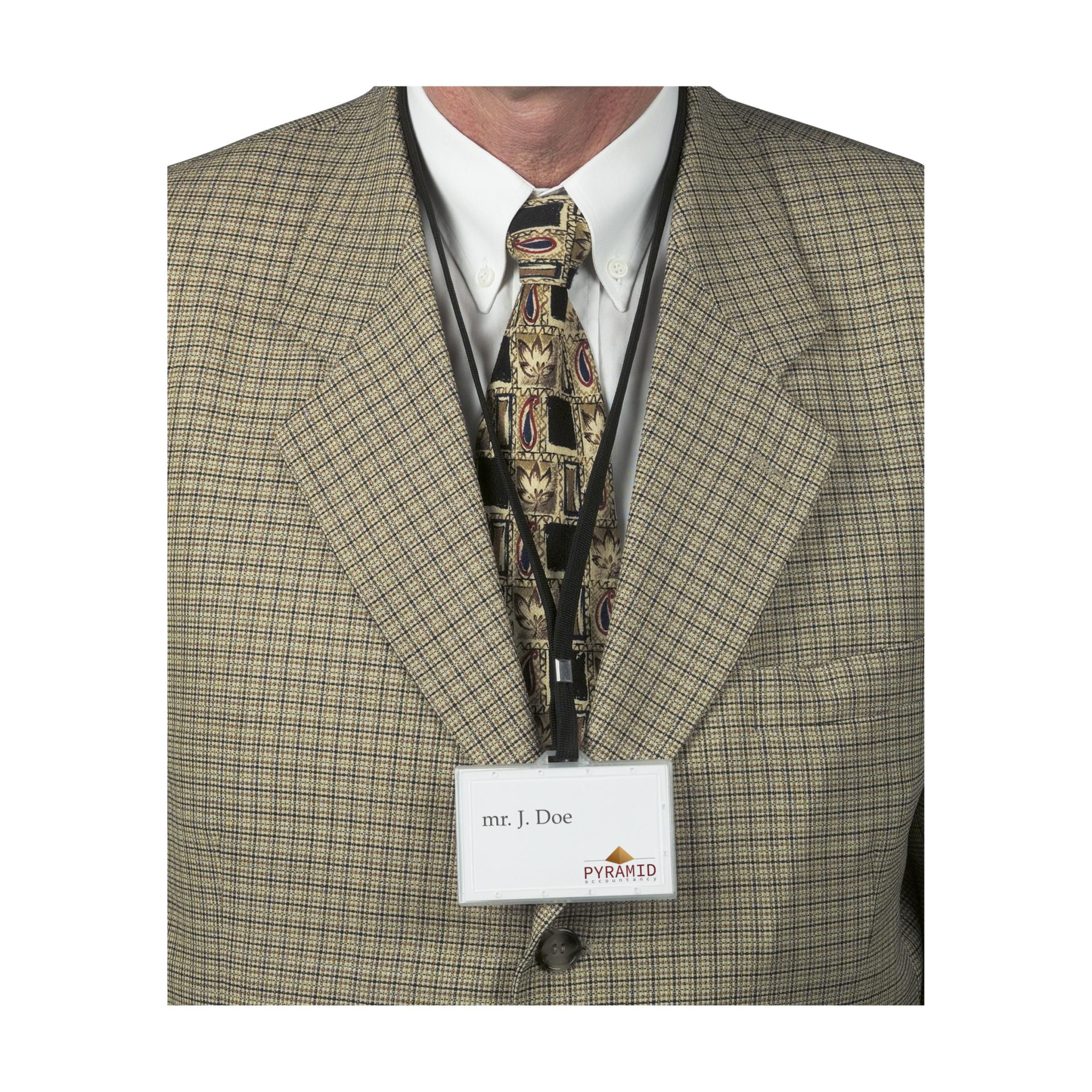 Läbipaistev nimekaardihoidja koos kaelapaelaga (90 cm). Sealhulgas tühi kaardi sisestus.